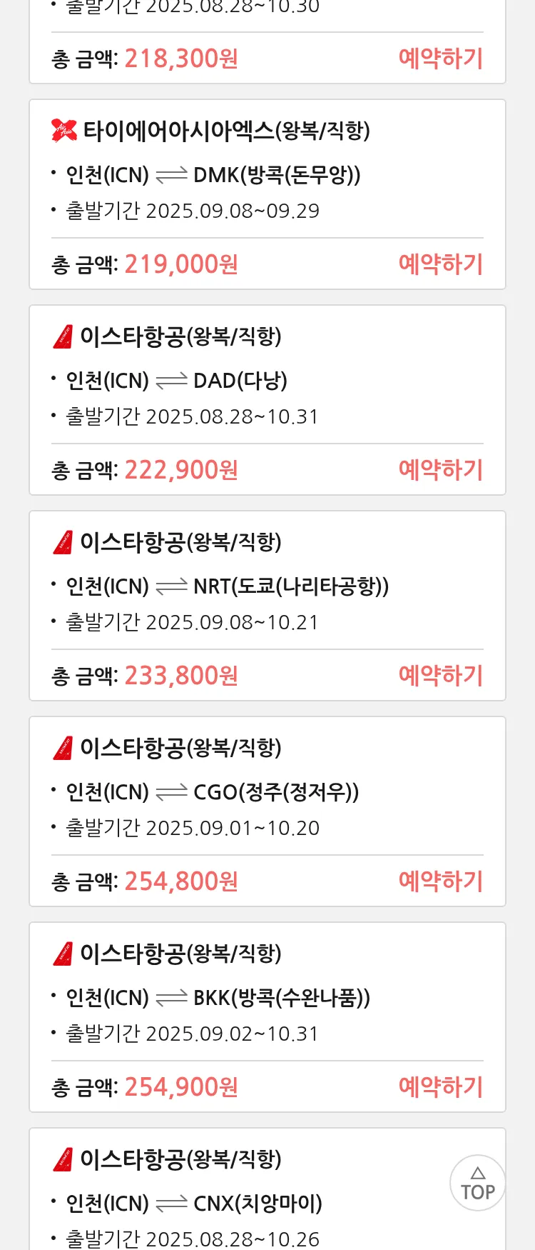 (8월 21일(목)) 모두투어 동남아 특가 항공권