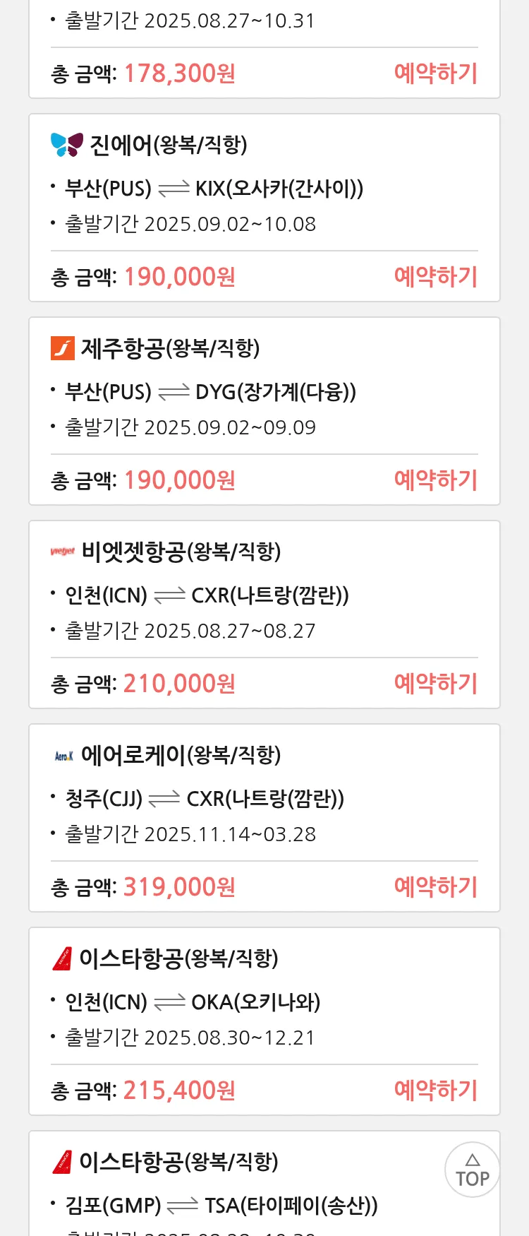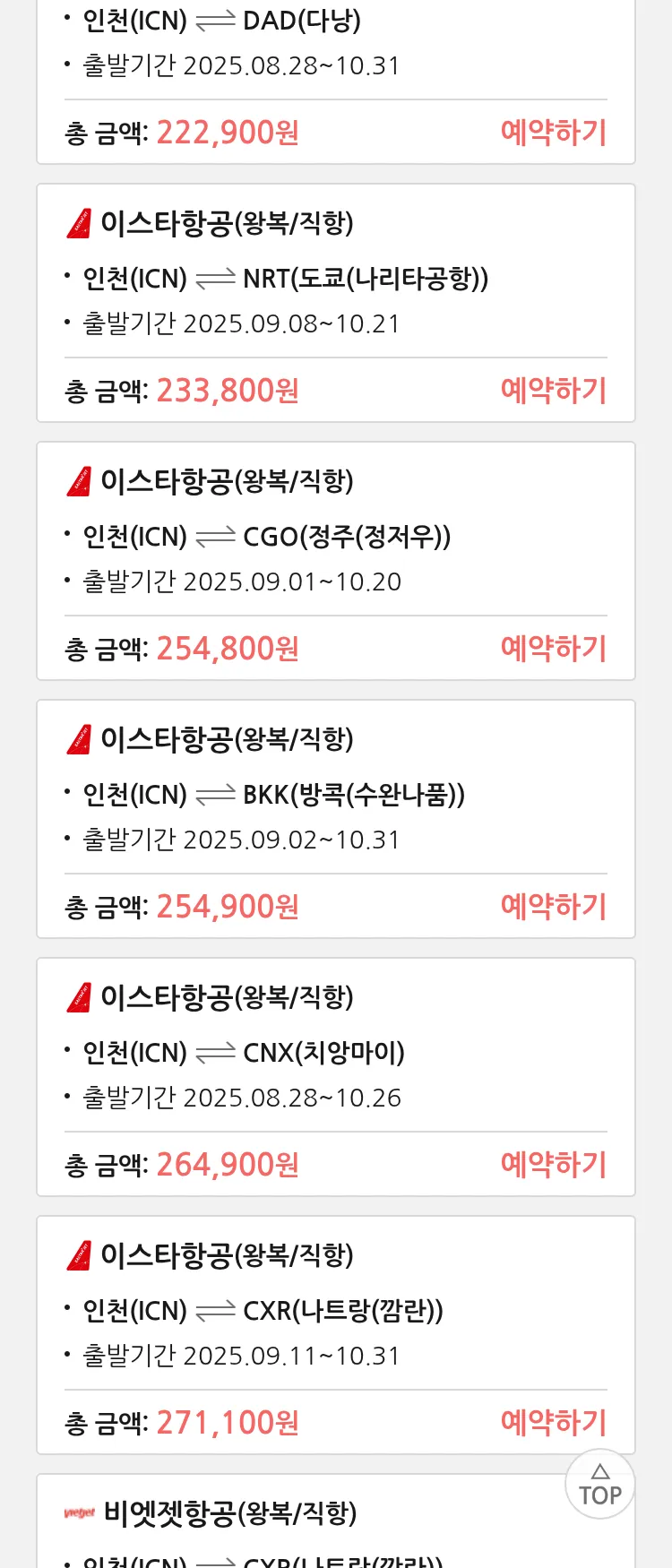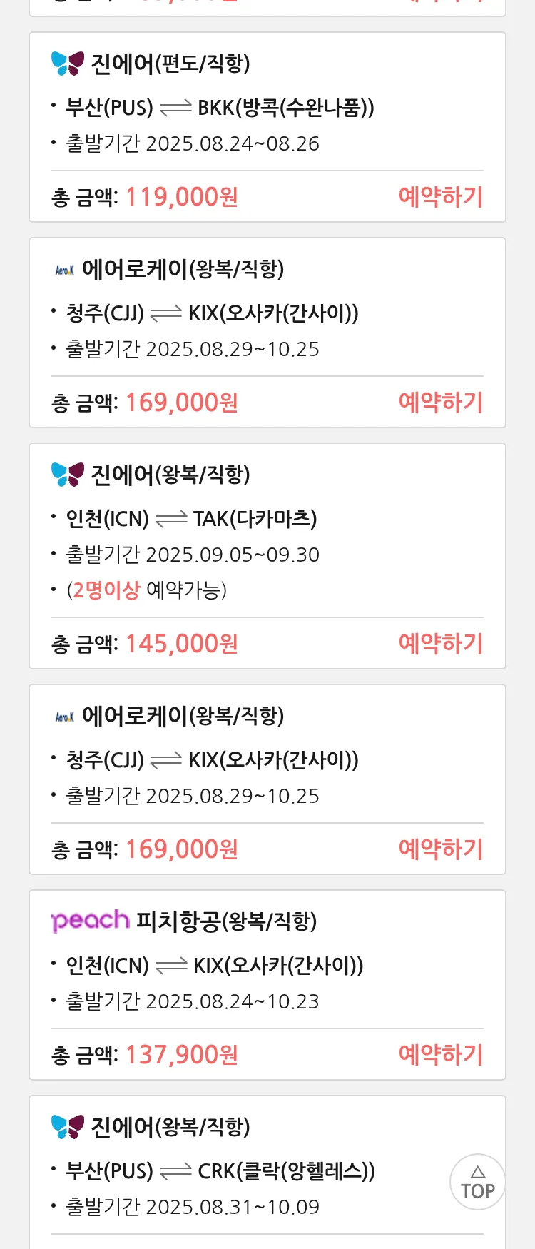 (8월 20일(수)) 모두투어 동남아 특가 항공권