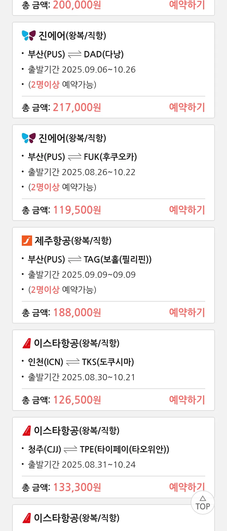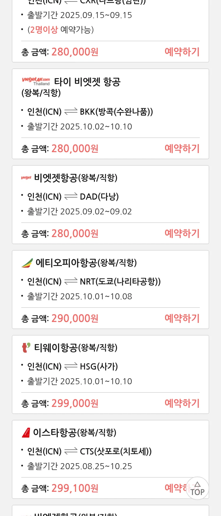 (8월 22일(금)) 모두투어 동남아 특가 항공권