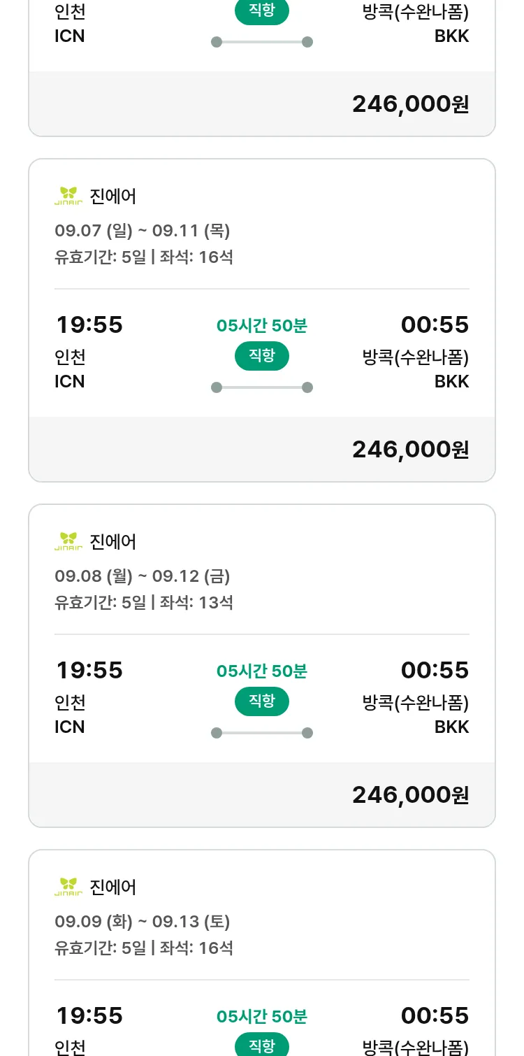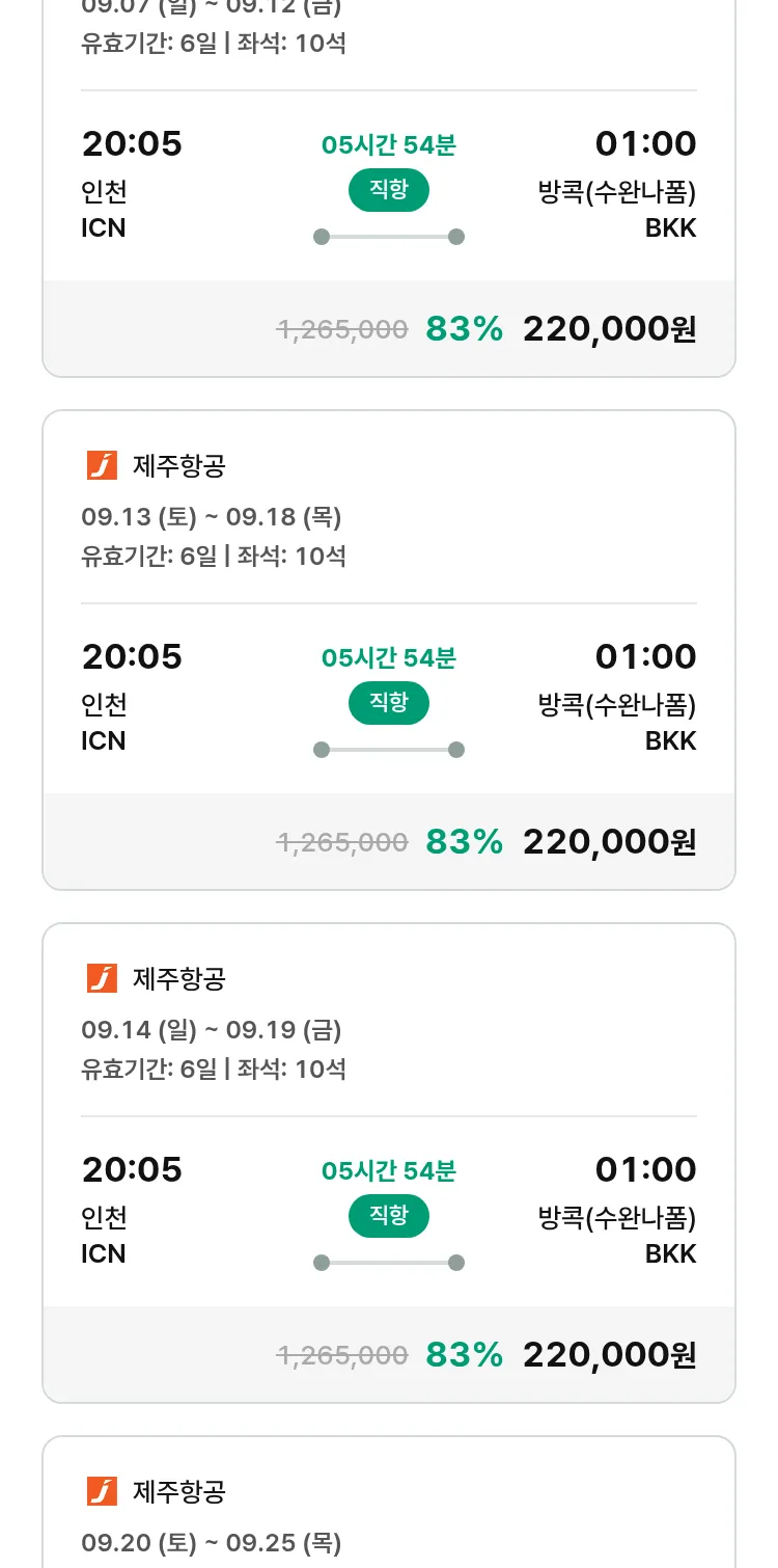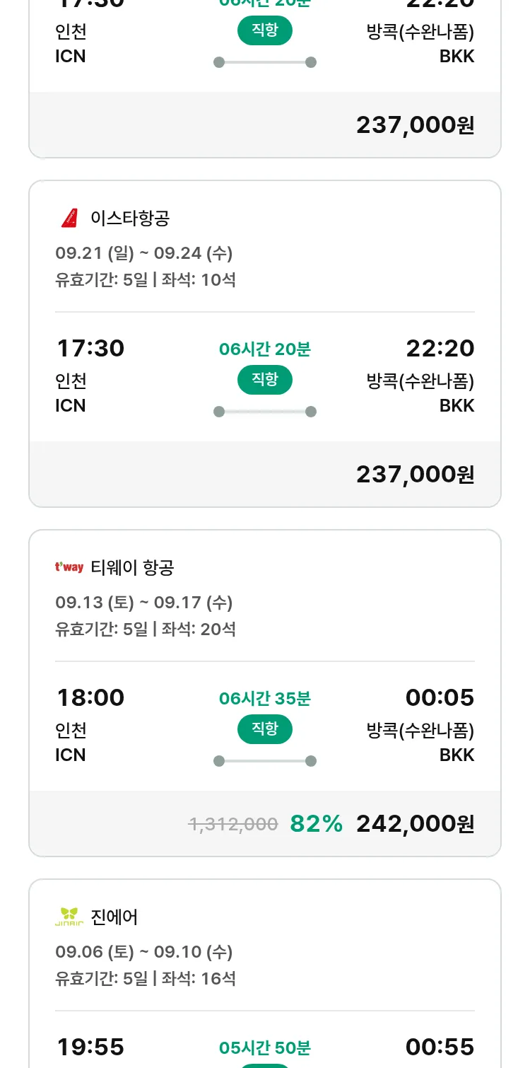 (8월 21일(목)) 땡처리 특가 항공권
