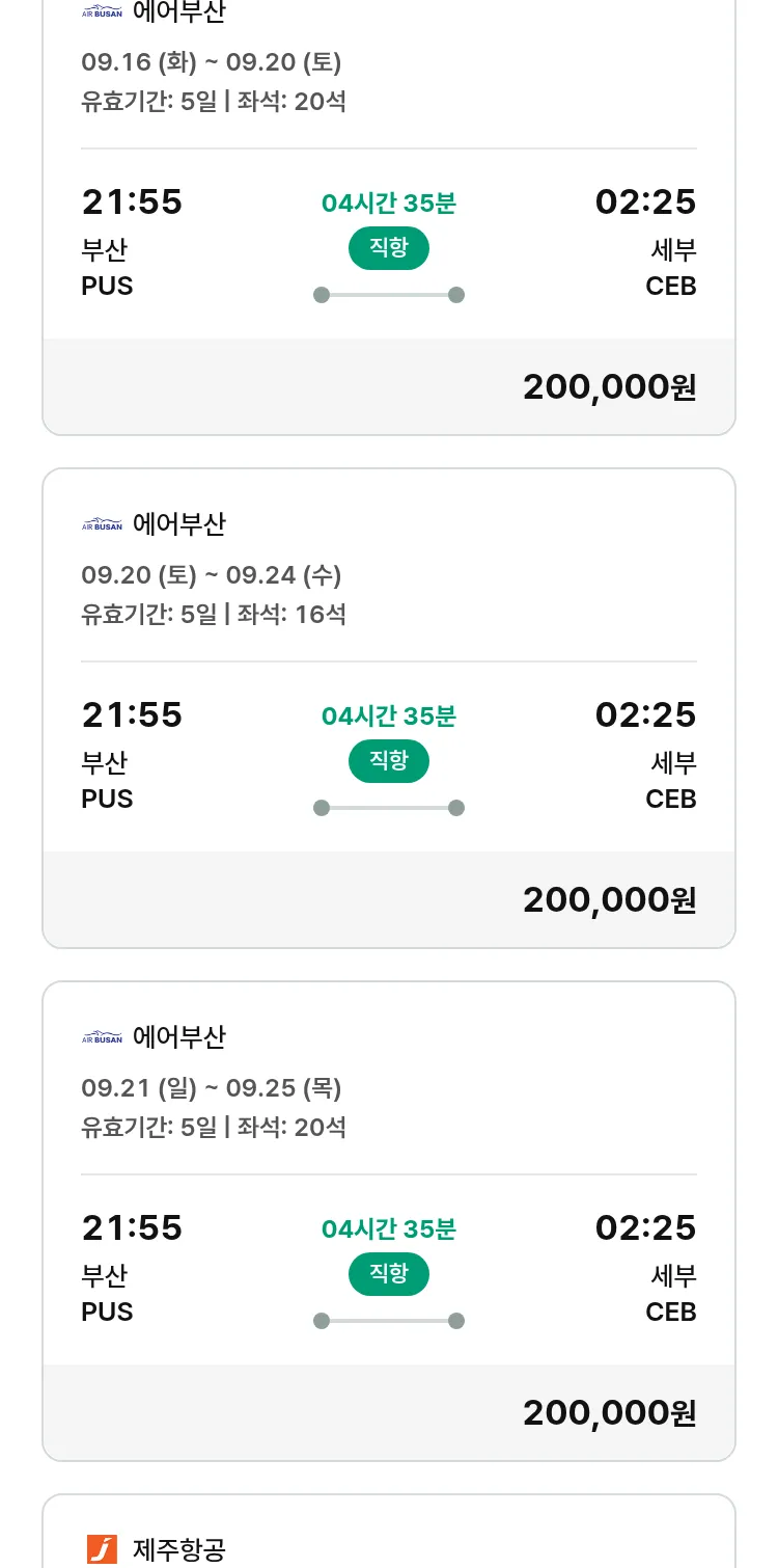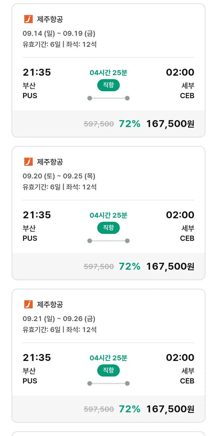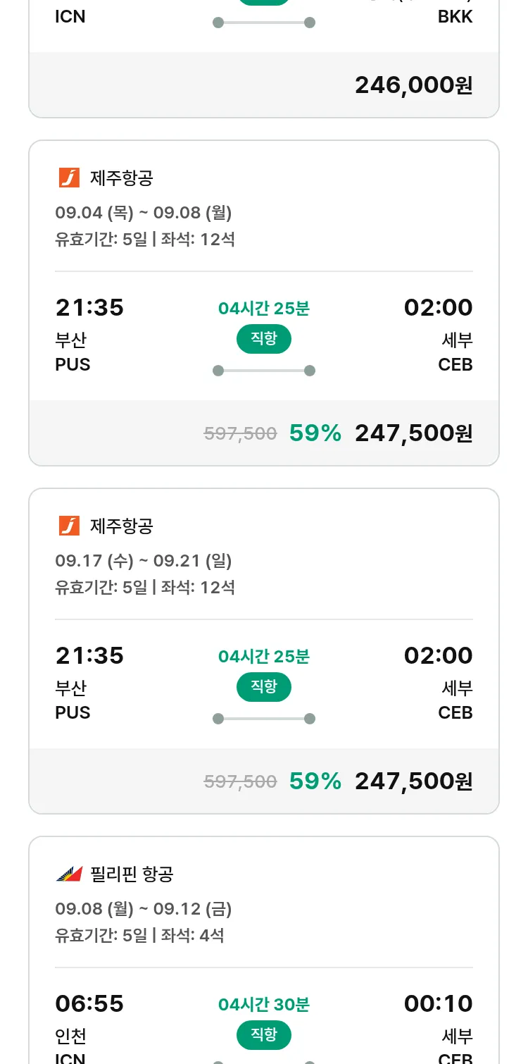 (8월 21일(목)) 땡처리 특가 항공권