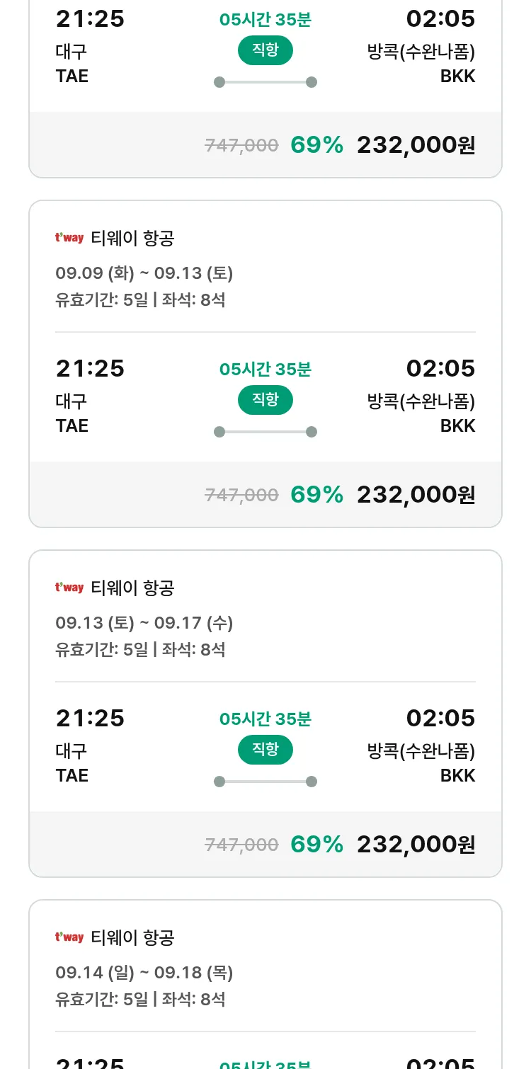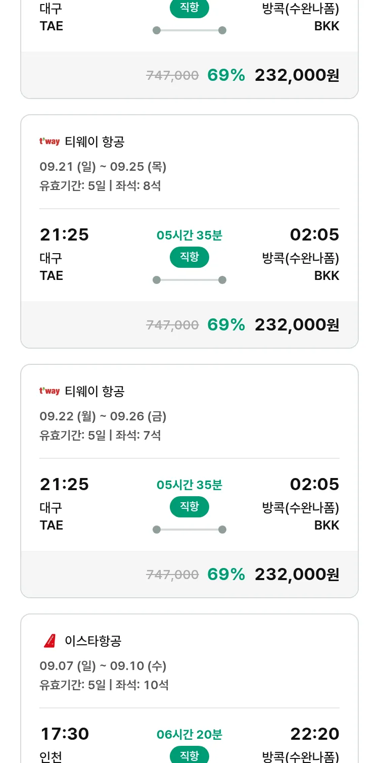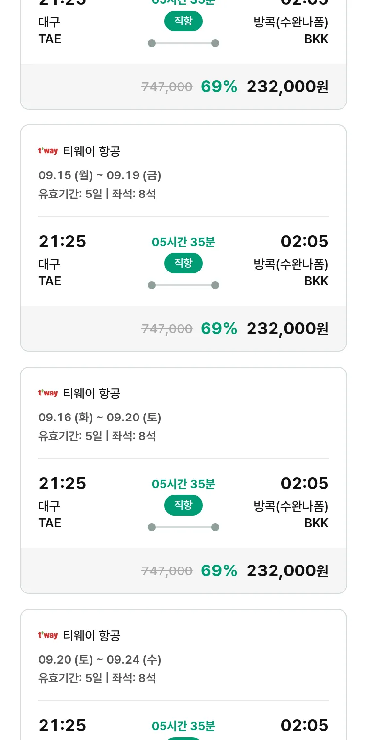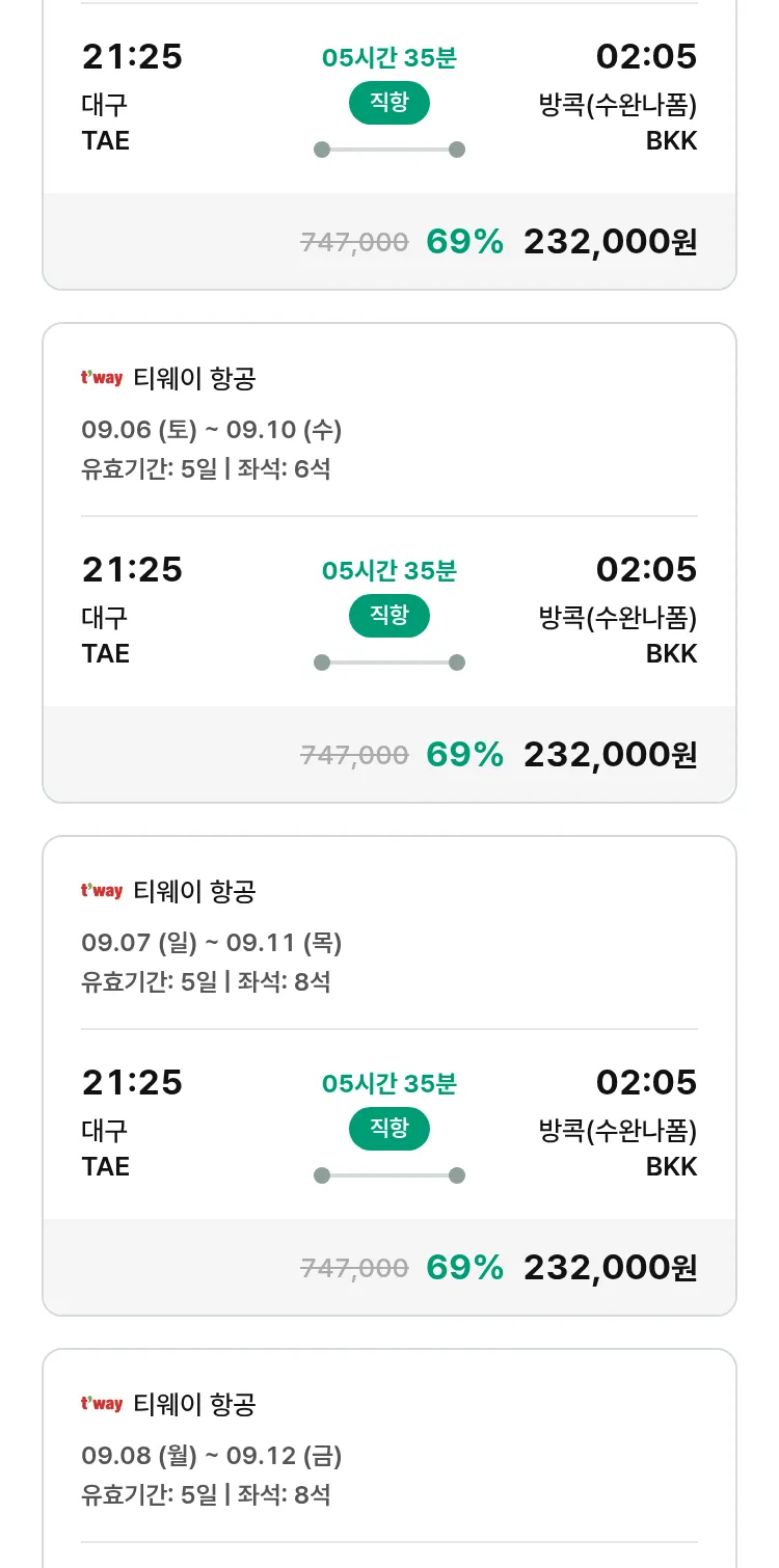 (8월 21일(목)) 모두투어 동남아 특가 항공권