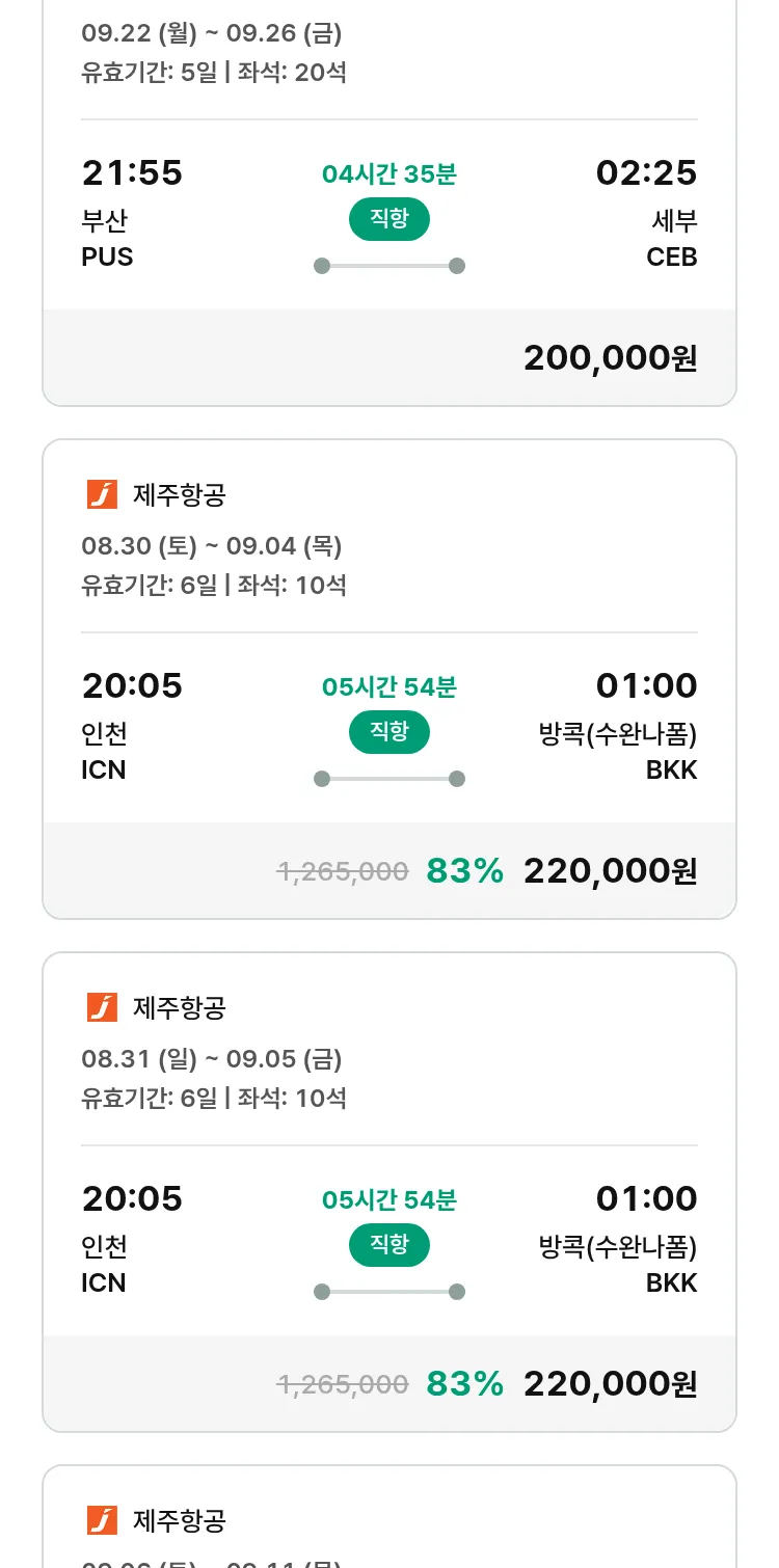(8월 20일(수)) 모두투어 동남아 특가 항공권