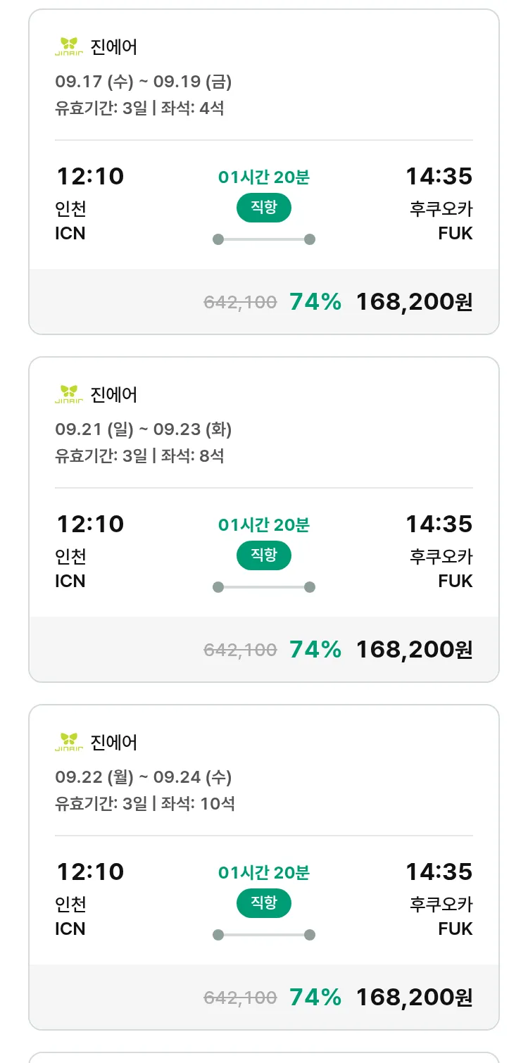 (8월 22일(금)) 모두투어 일본 특가 항공권