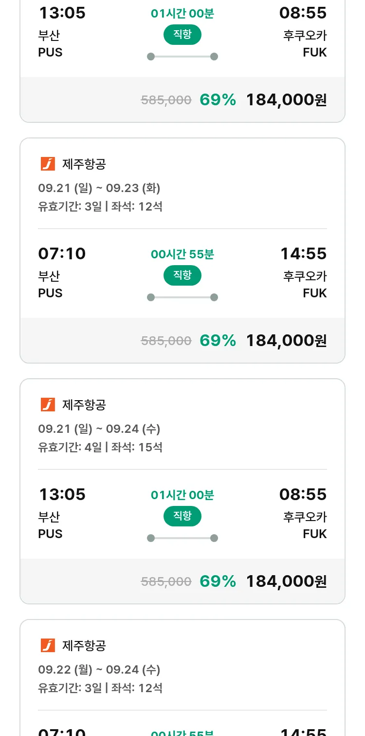 (8월 21일(목)) 모두투어 일본 특가 항공권