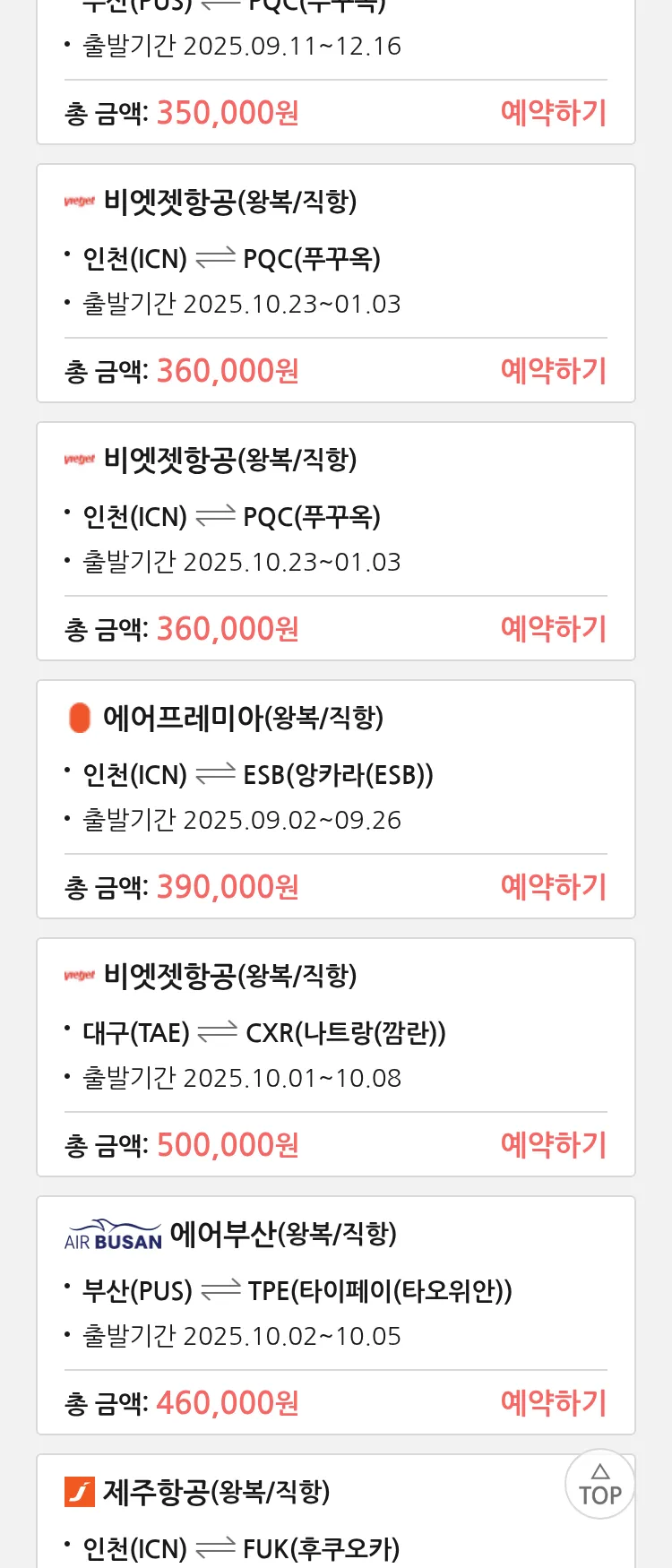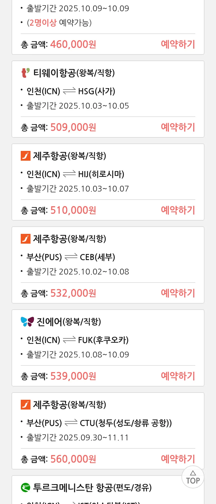 (8월 23일(토)) 땡처리 특가 항공권