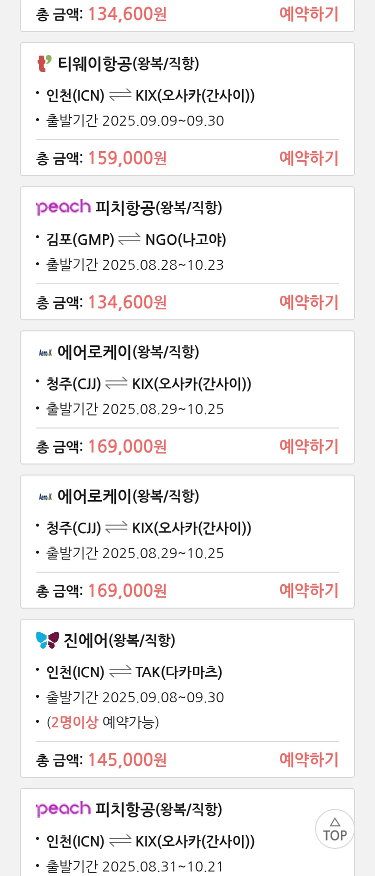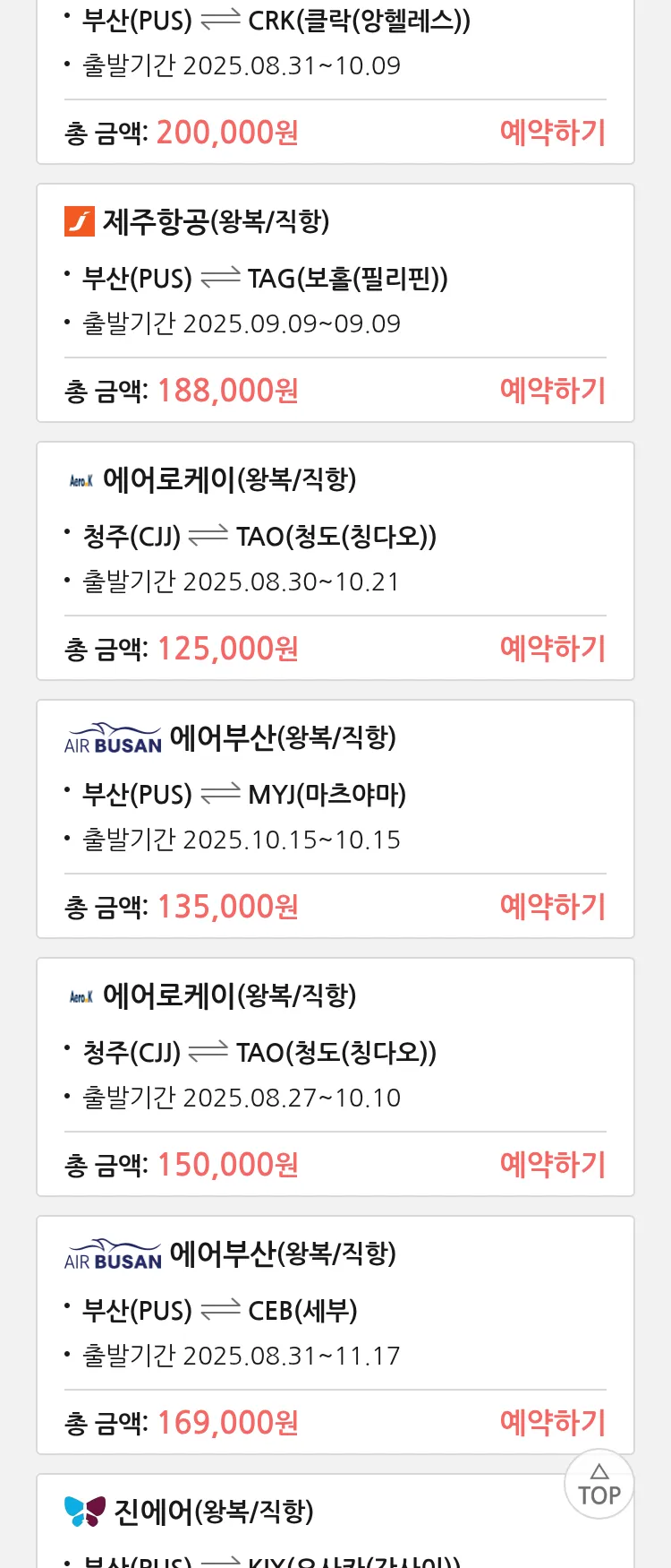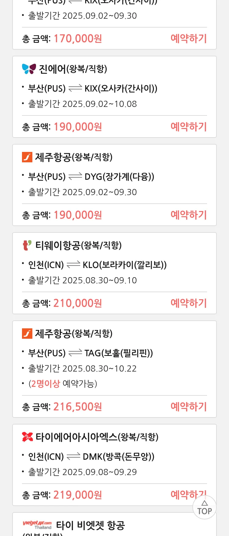 (8월 24일(일)) 땡처리 특가 항공권
