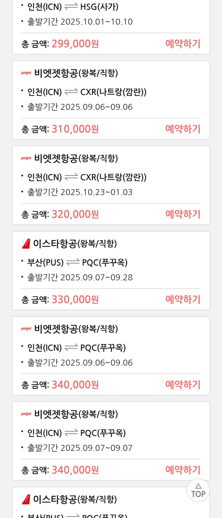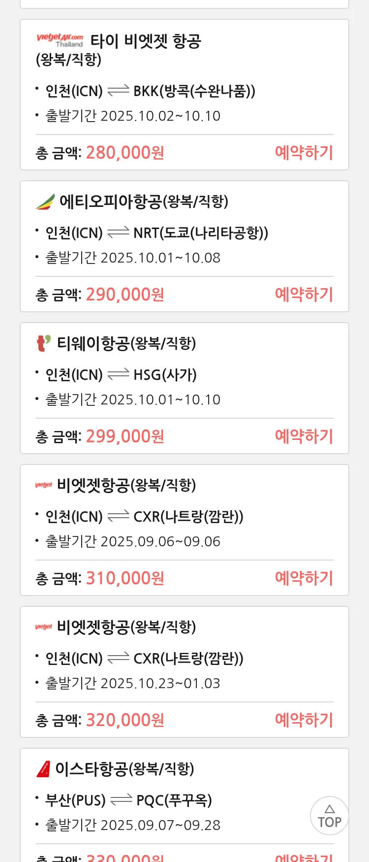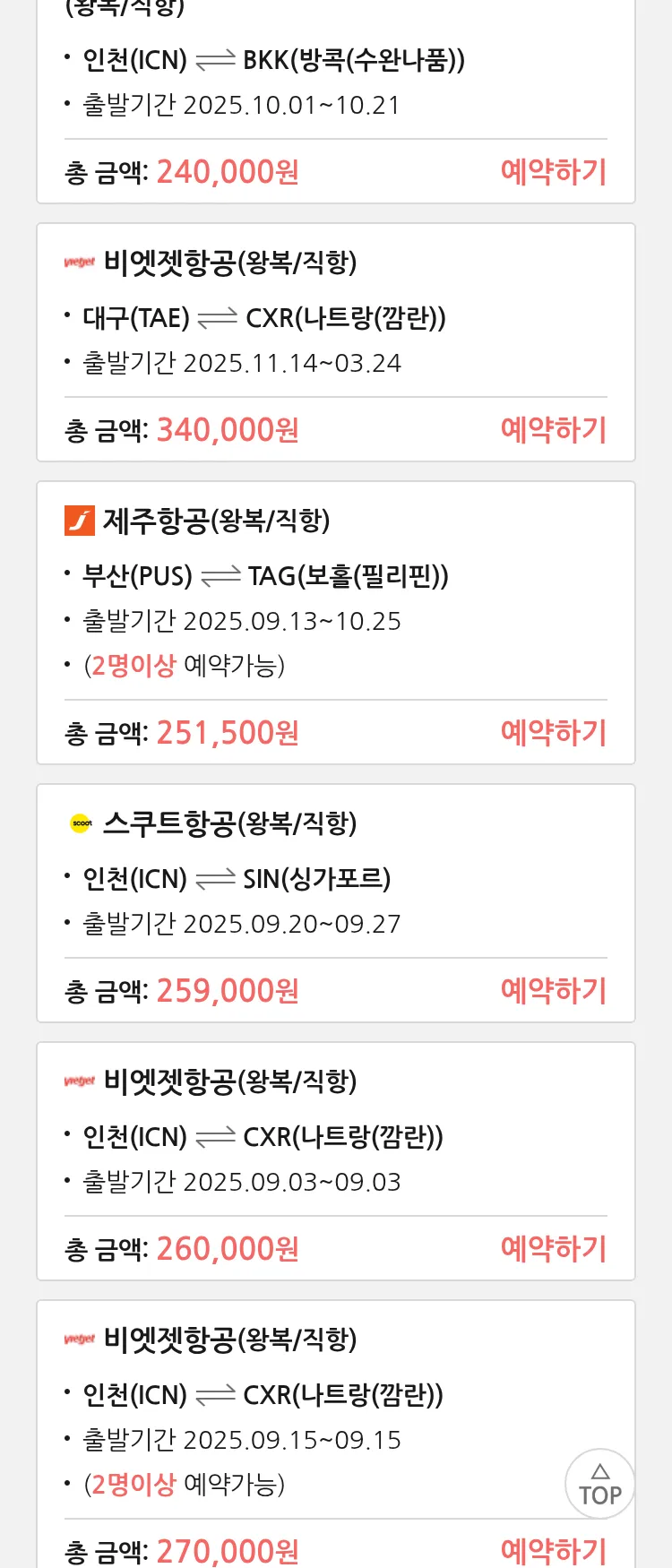 (8월 24일(일)) 땡처리 특가 항공권