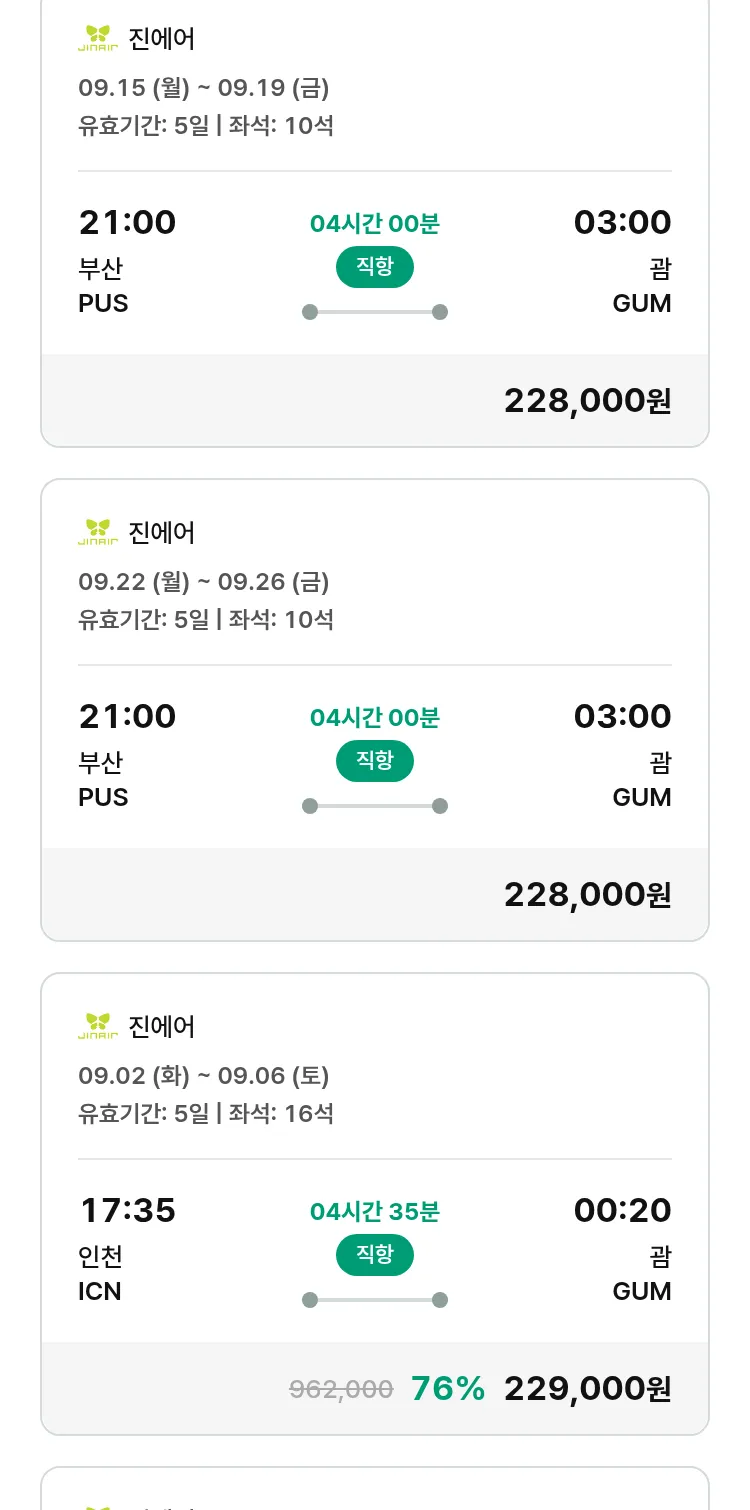 (8월 24일(일)) 땡처리 특가 항공권