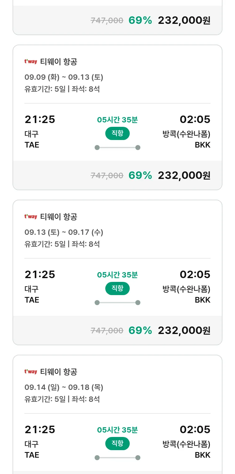 (8월 25일(월)) 모두투어 동남아 특가 항공권