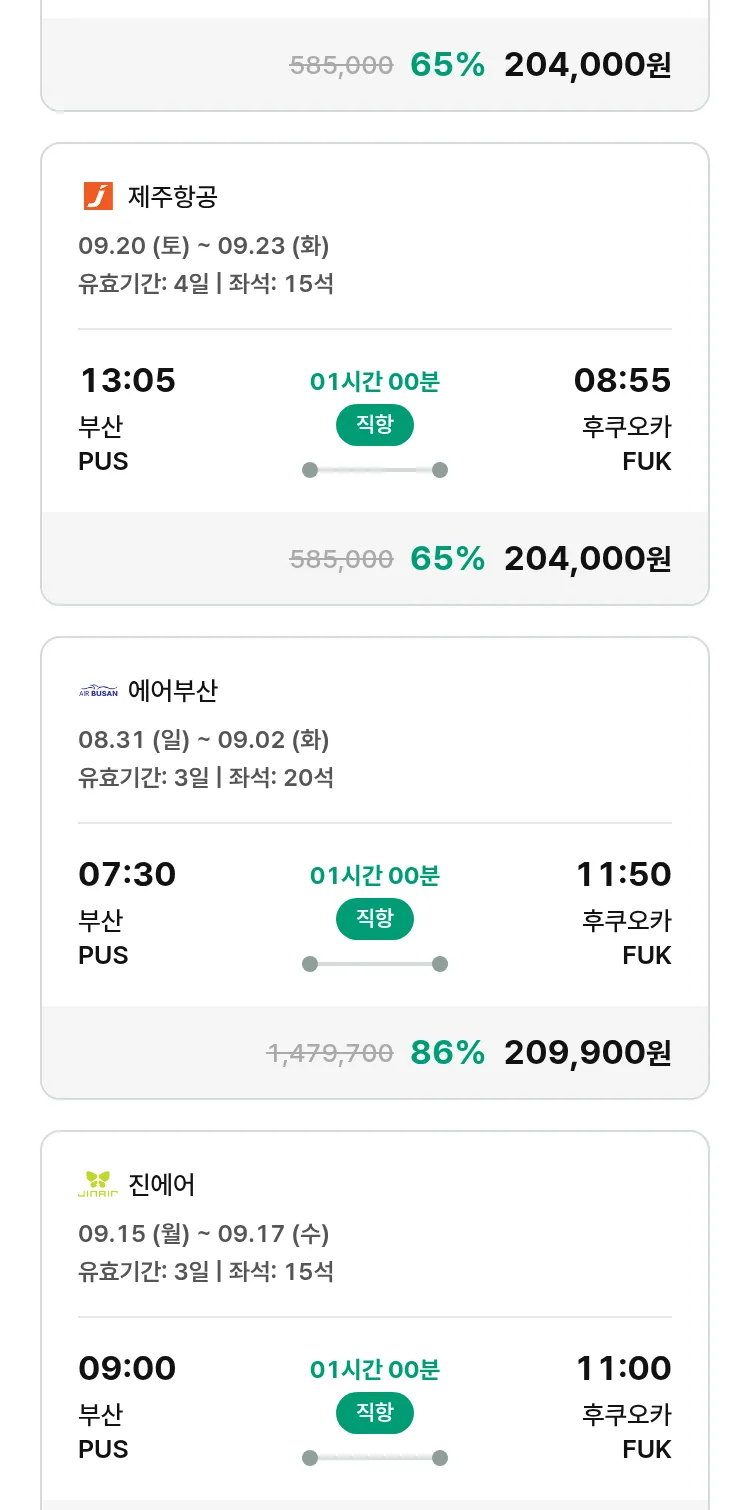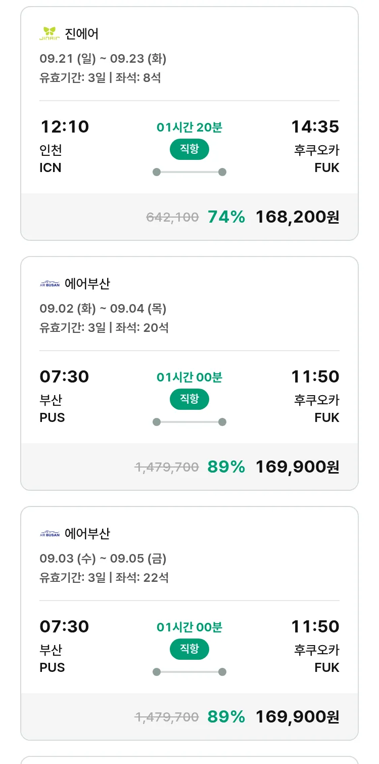 (8월 23일(토)) 모두투어 일본 특가 항공권