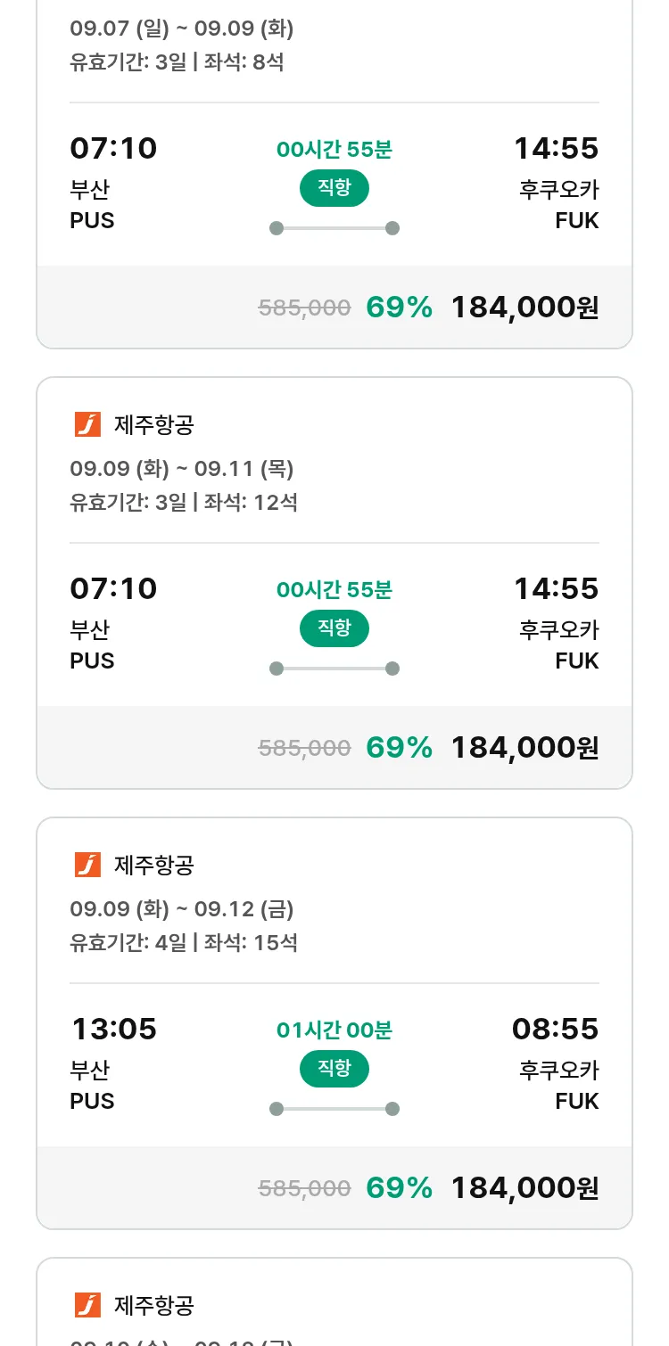 (8월 25일(월)) 모두투어 일본 특가 항공권