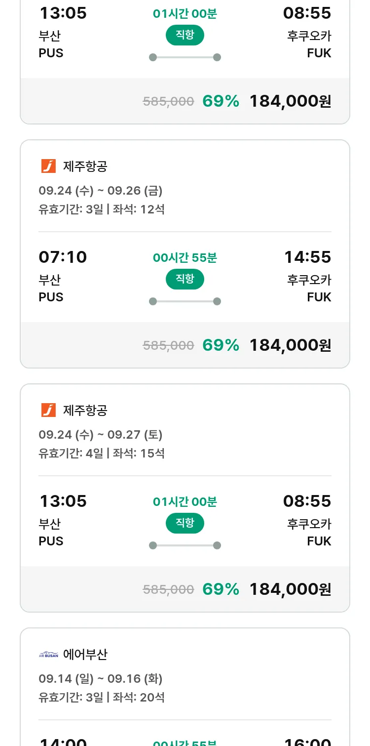 (8월 24일(일)) 땡처리 특가 항공권