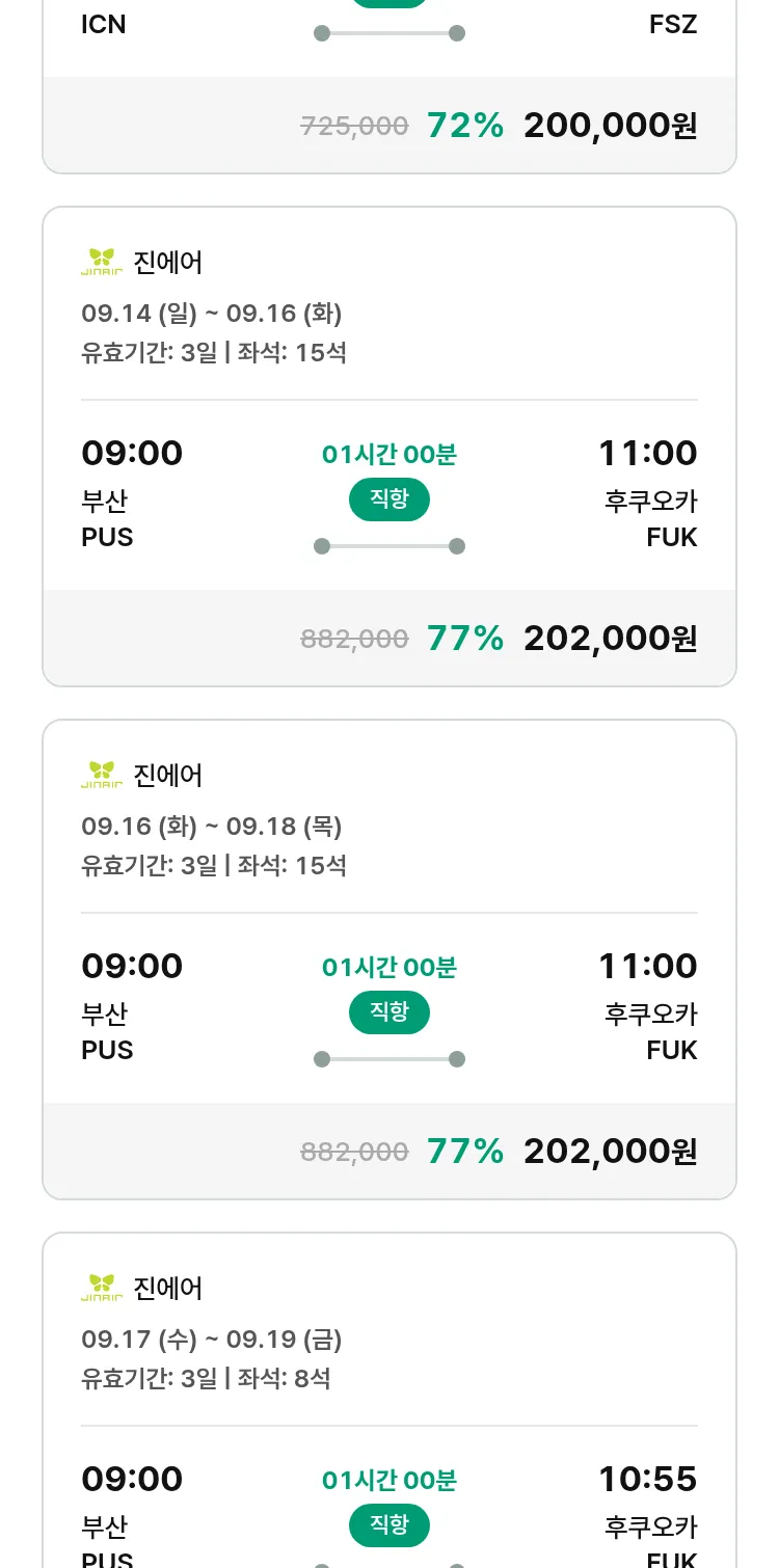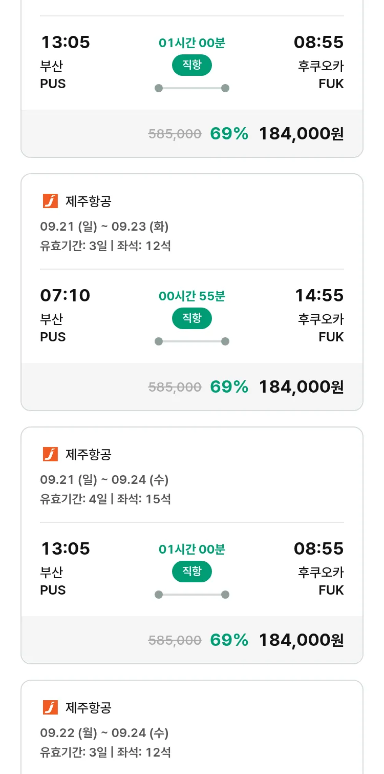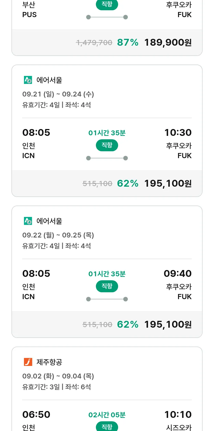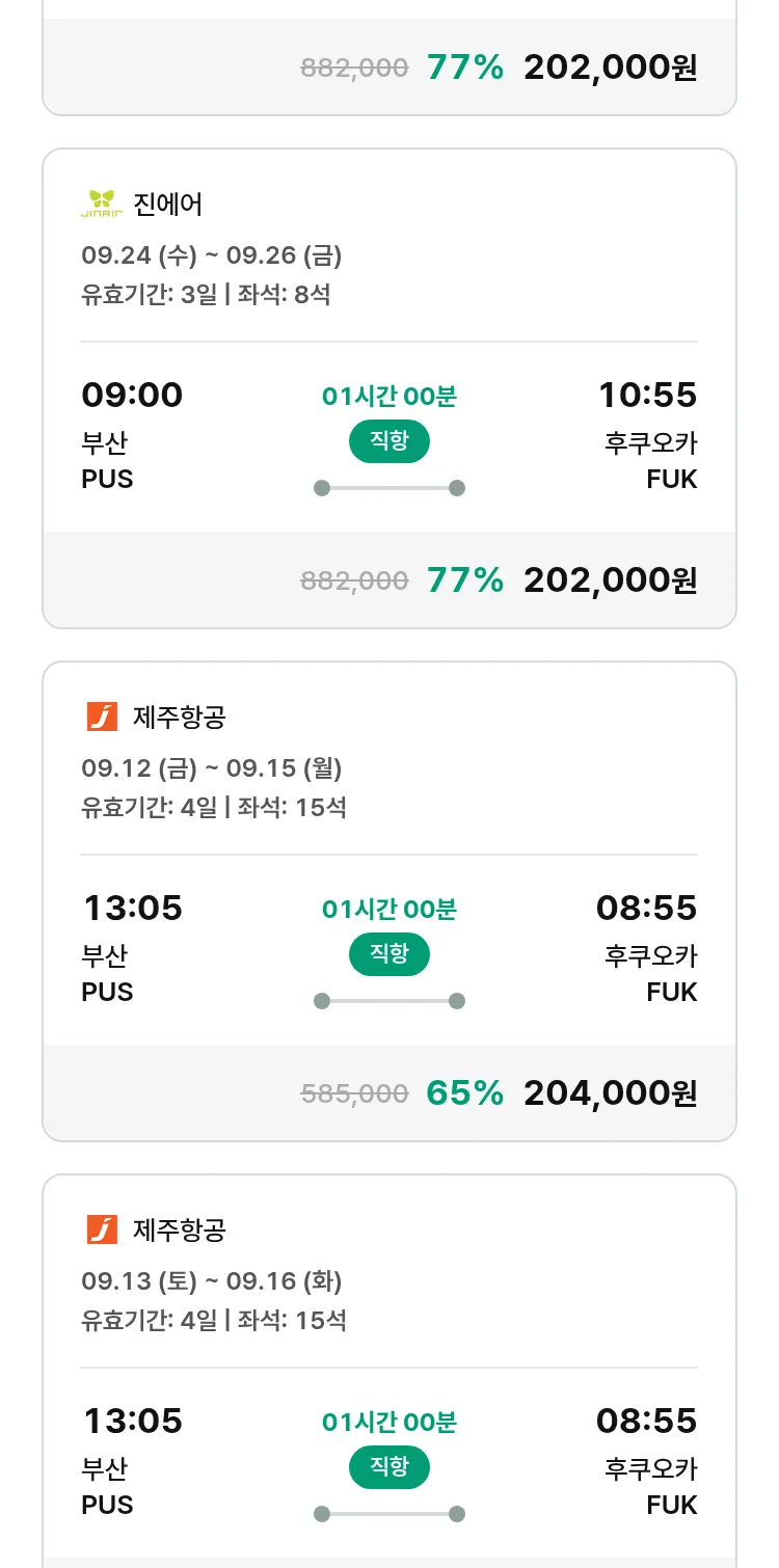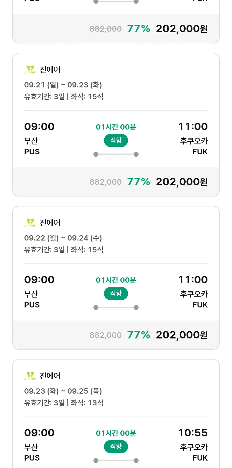 (8월 22일(금)) 땡처리 특가 항공권