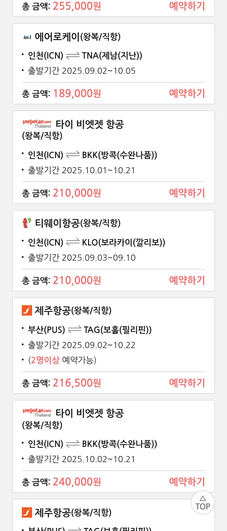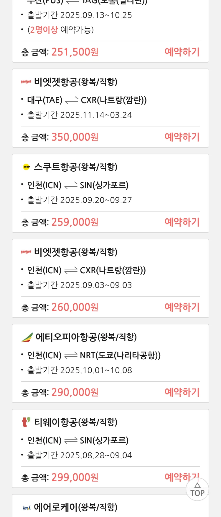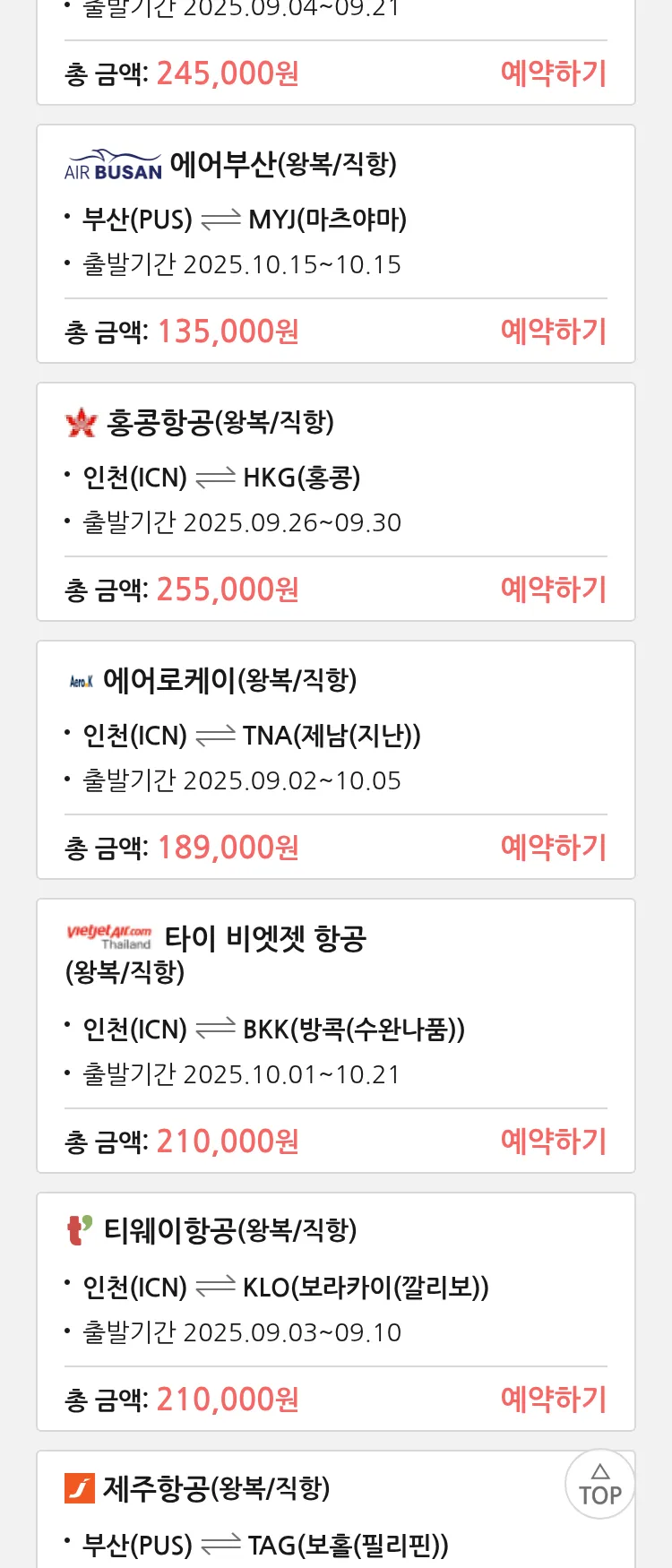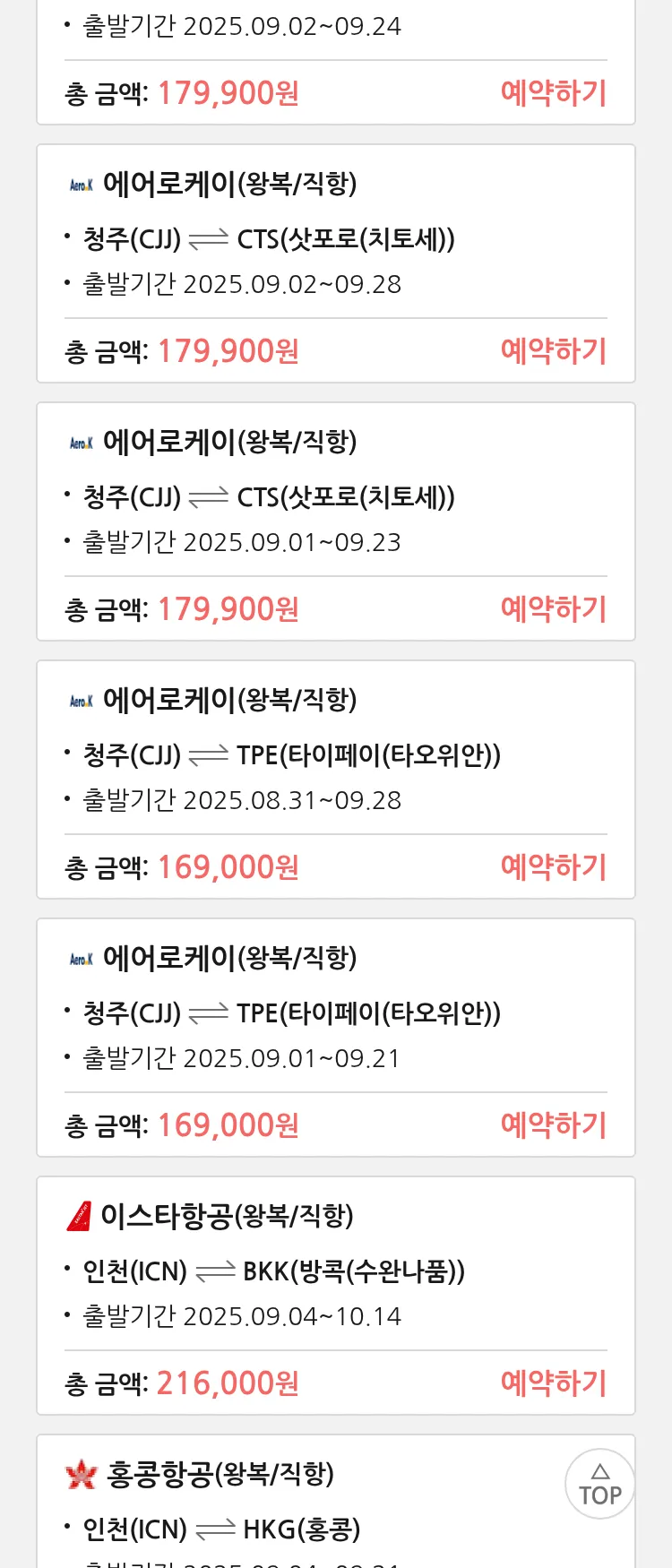 (8월 25일(월)) 땡처리 특가 항공권