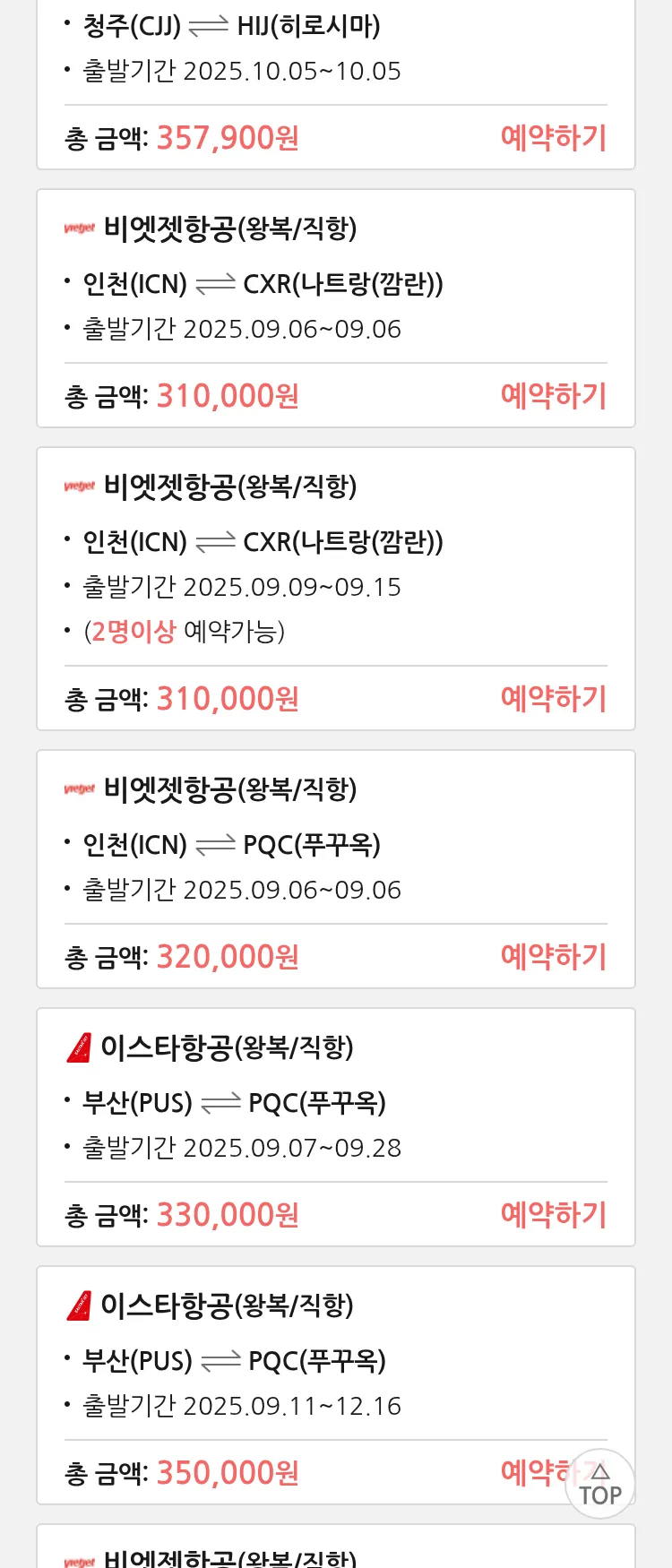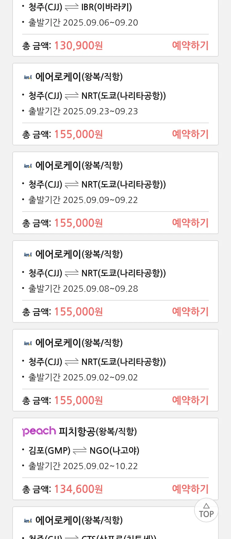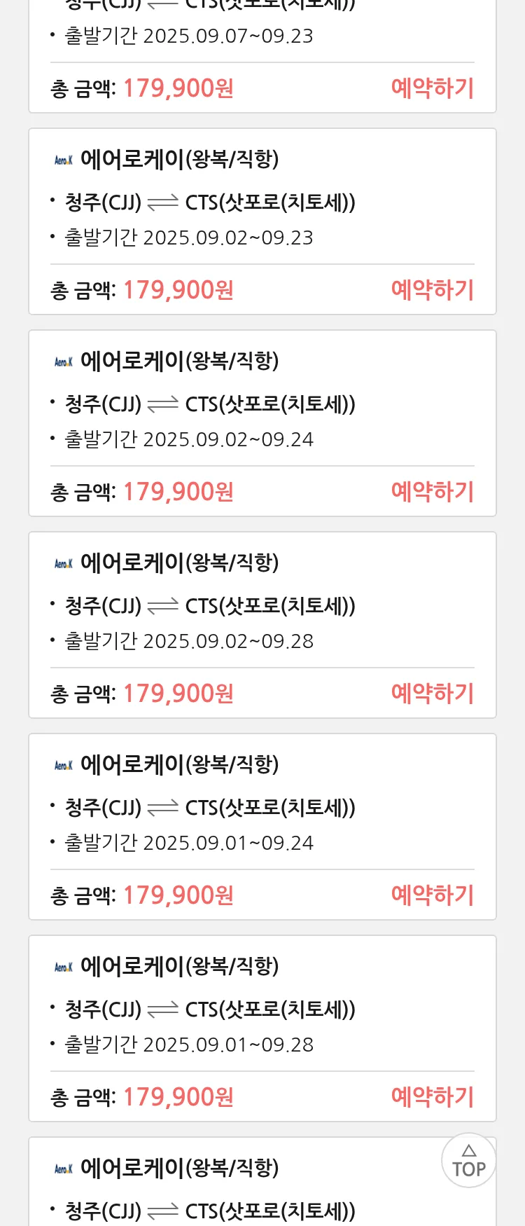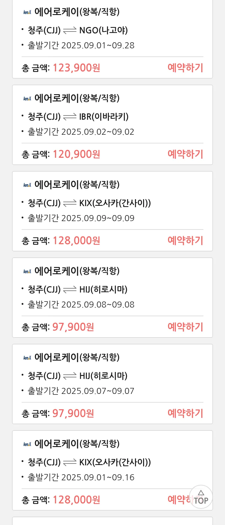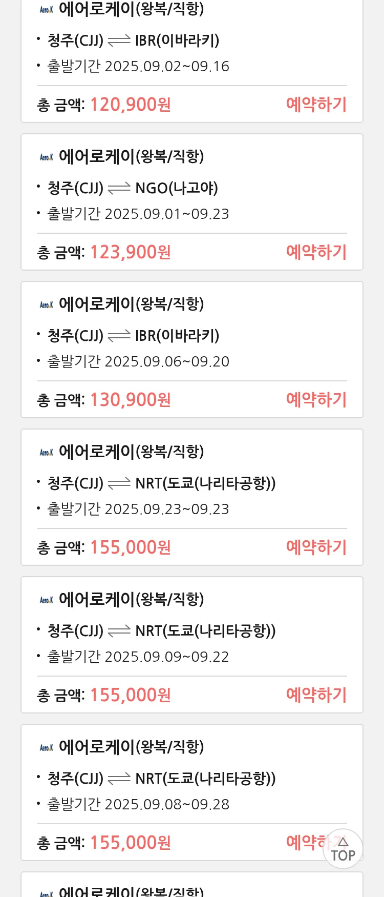(8월 25일(월)) 땡처리 특가 항공권