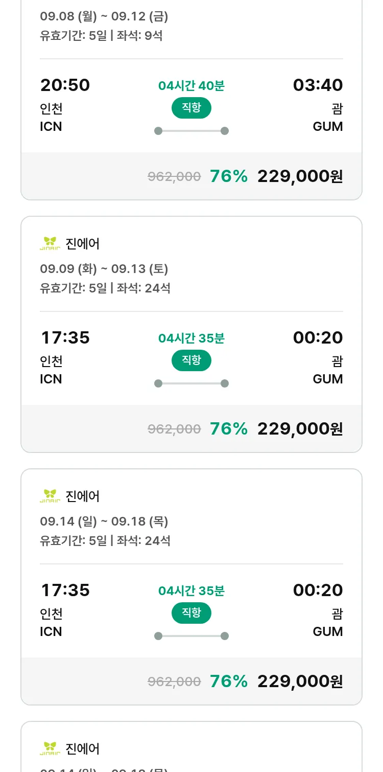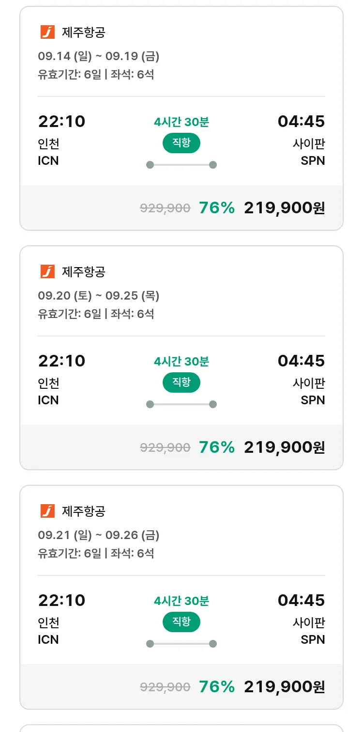 (8월 29일(금)) 모두투어 남태평양 특가 항공권