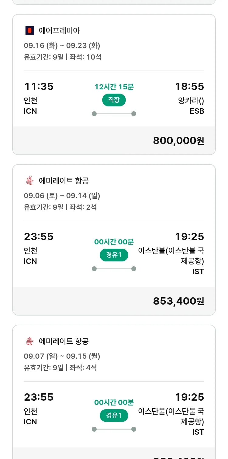 (8월 26일(화)) 땡처리 특가 항공권