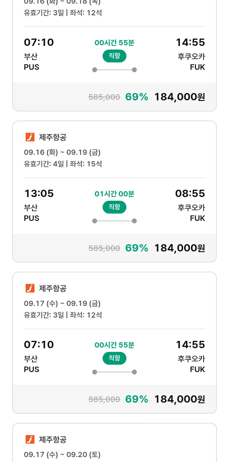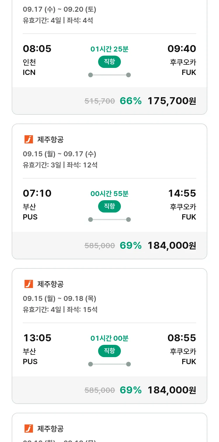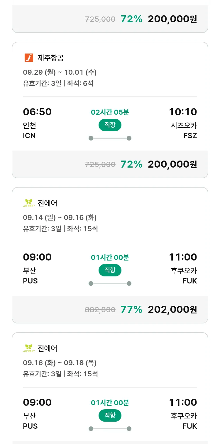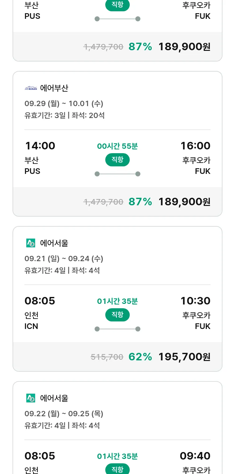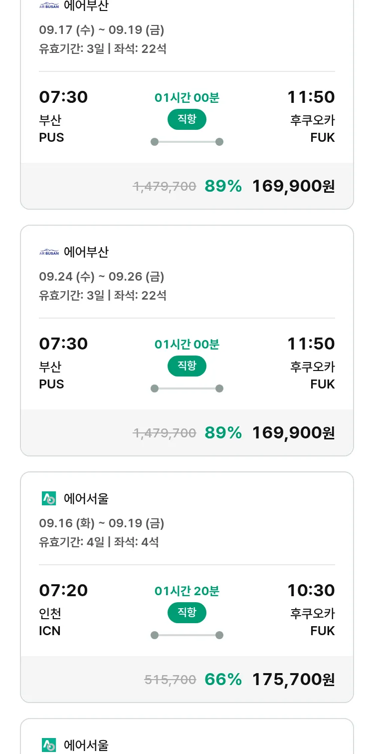 (8월 26일(화)) 땡처리 특가 항공권