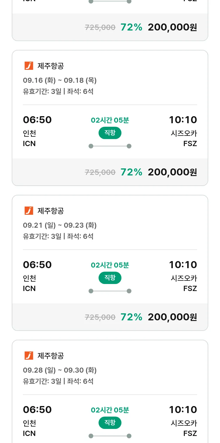 (8월 25일(월)) 땡처리 특가 항공권