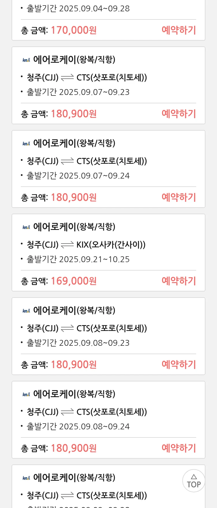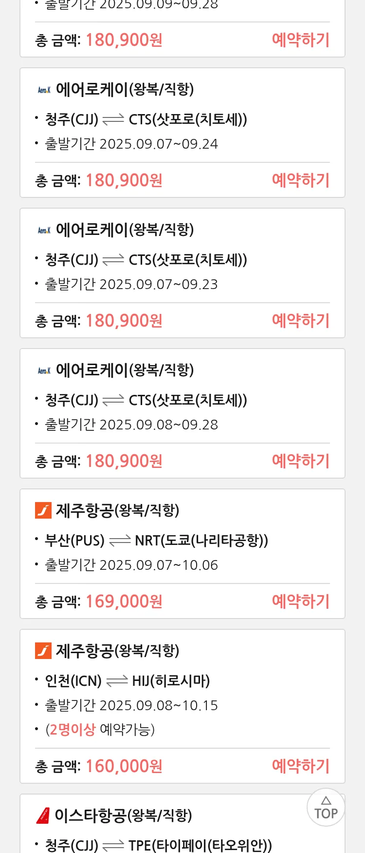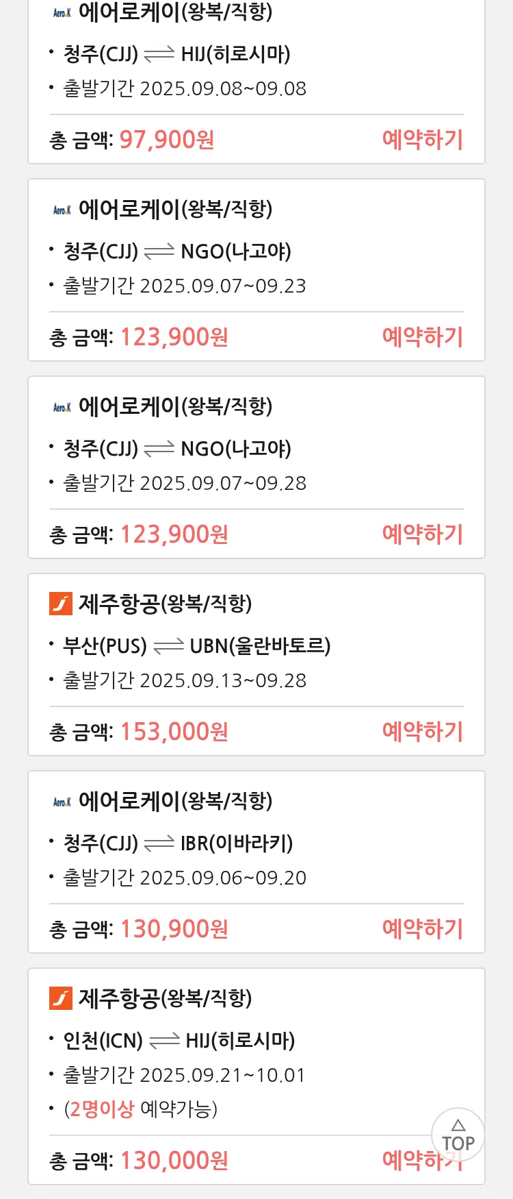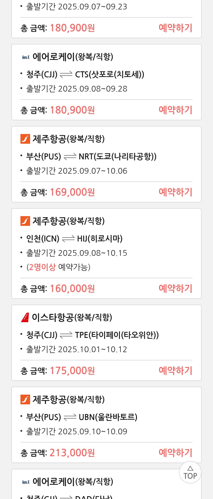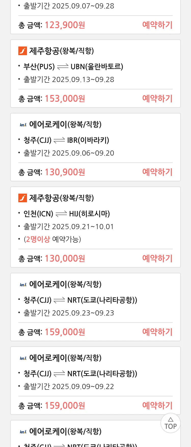 (9월1일(월)) 모두투어 일본 특가 항공권