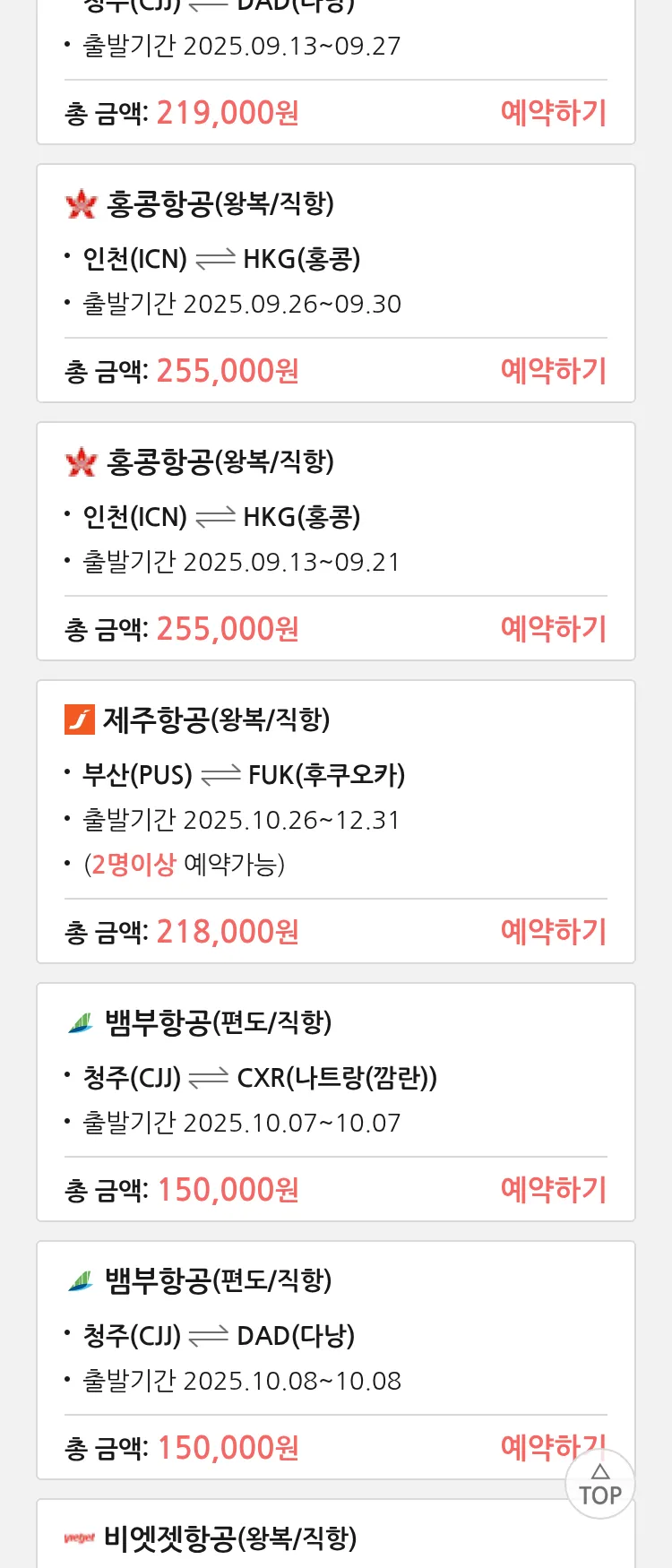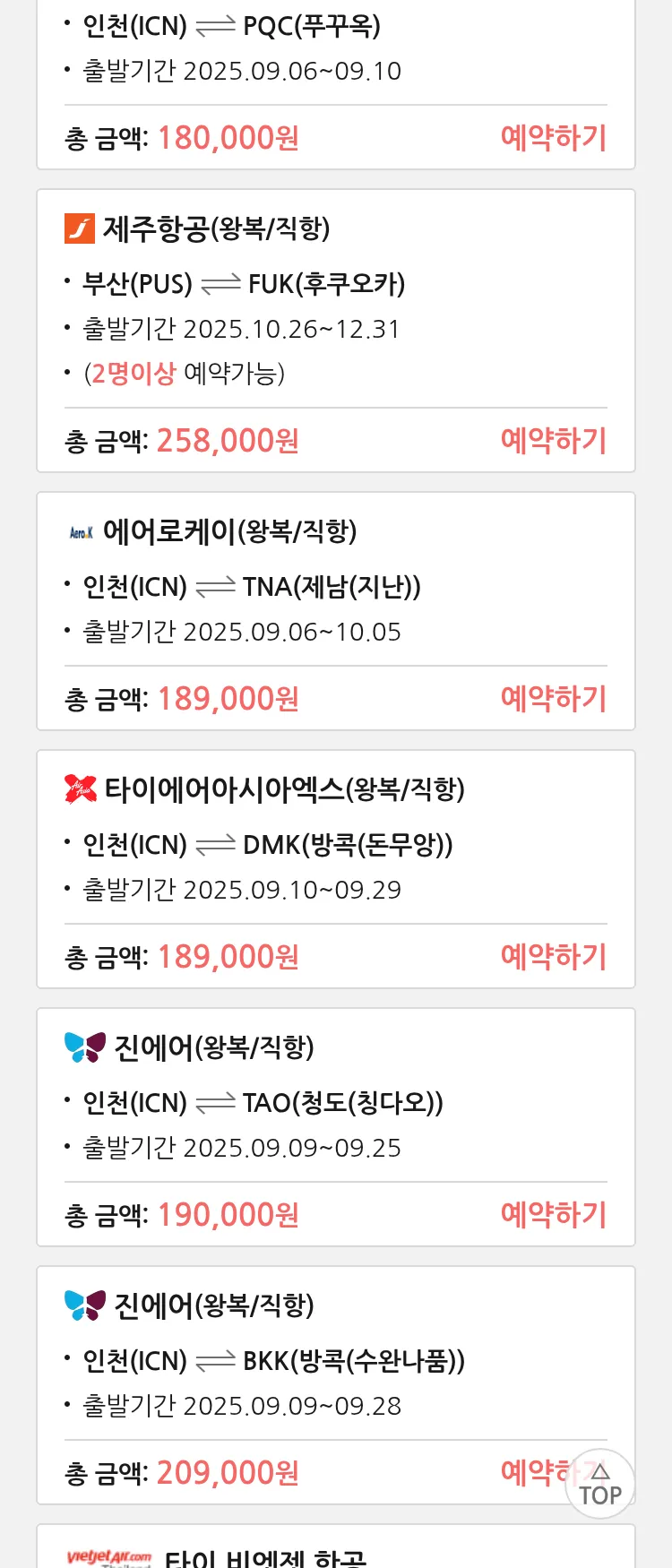 (8월 30일(토)) 모두투어 동남아 특가 항공권