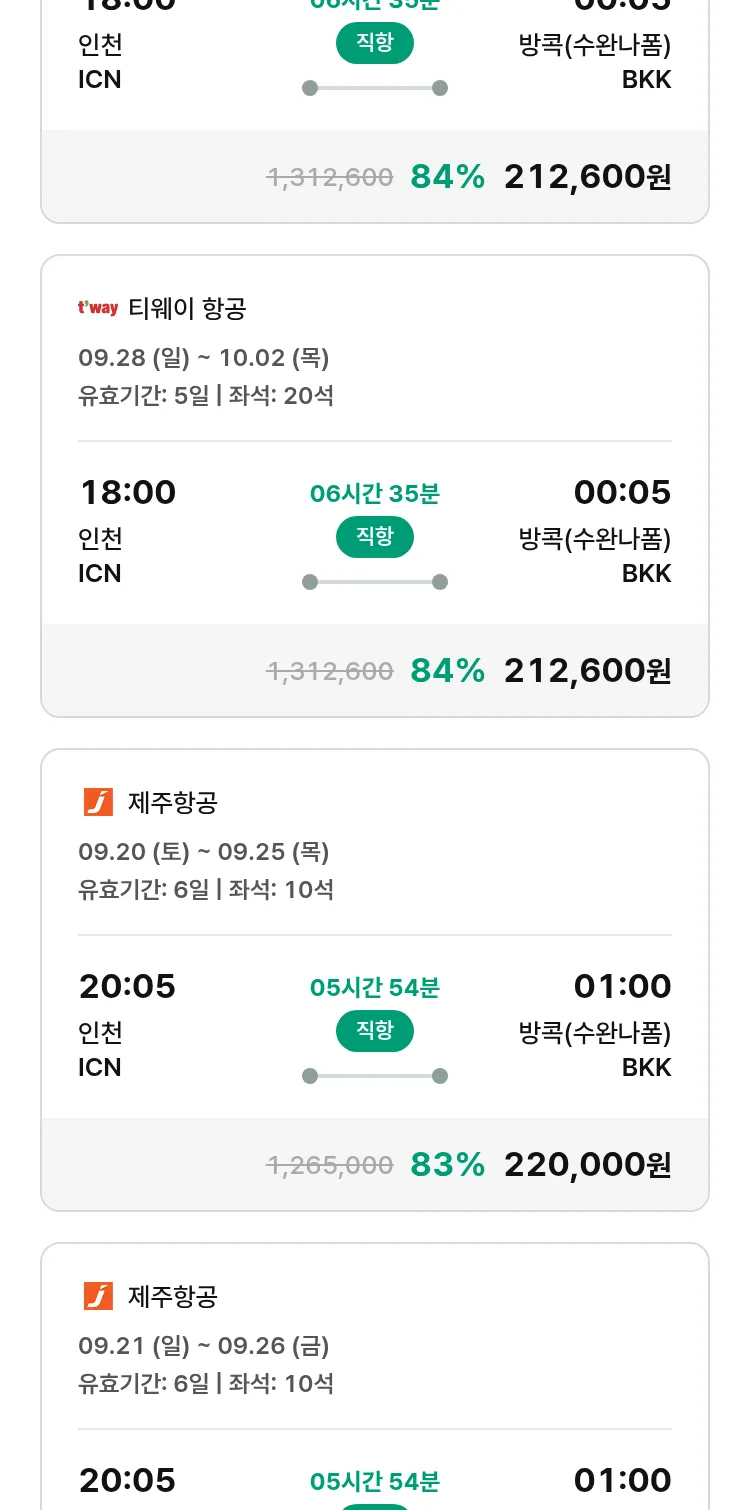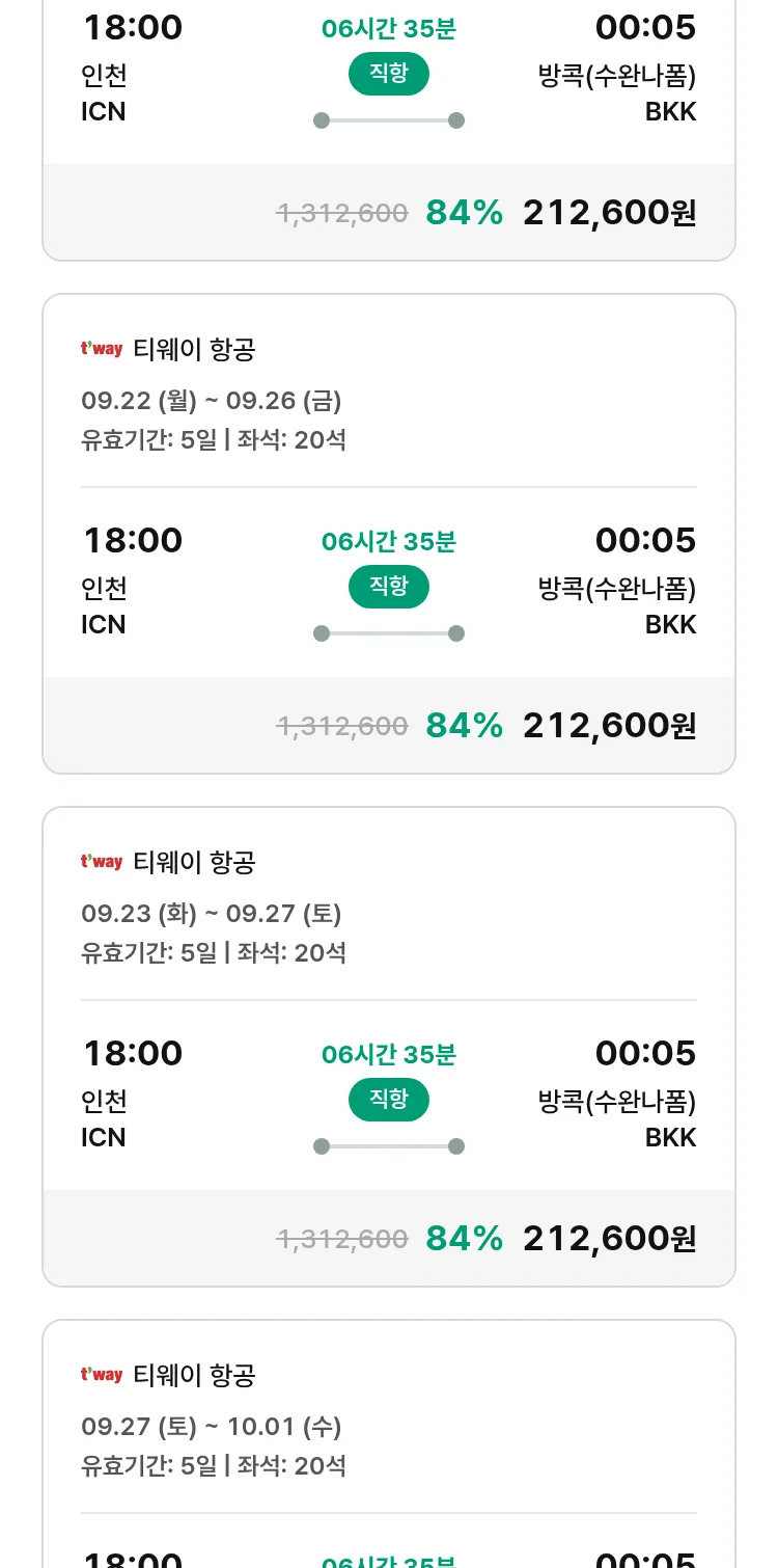 (9월1일(월)) 모두투어 동남아 특가 항공권