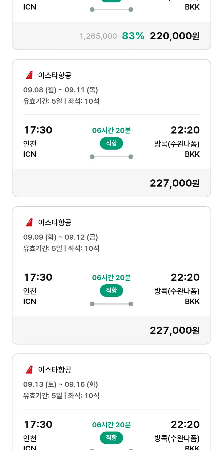 (8월 30일(토)) 모두투어 동남아 특가 항공권