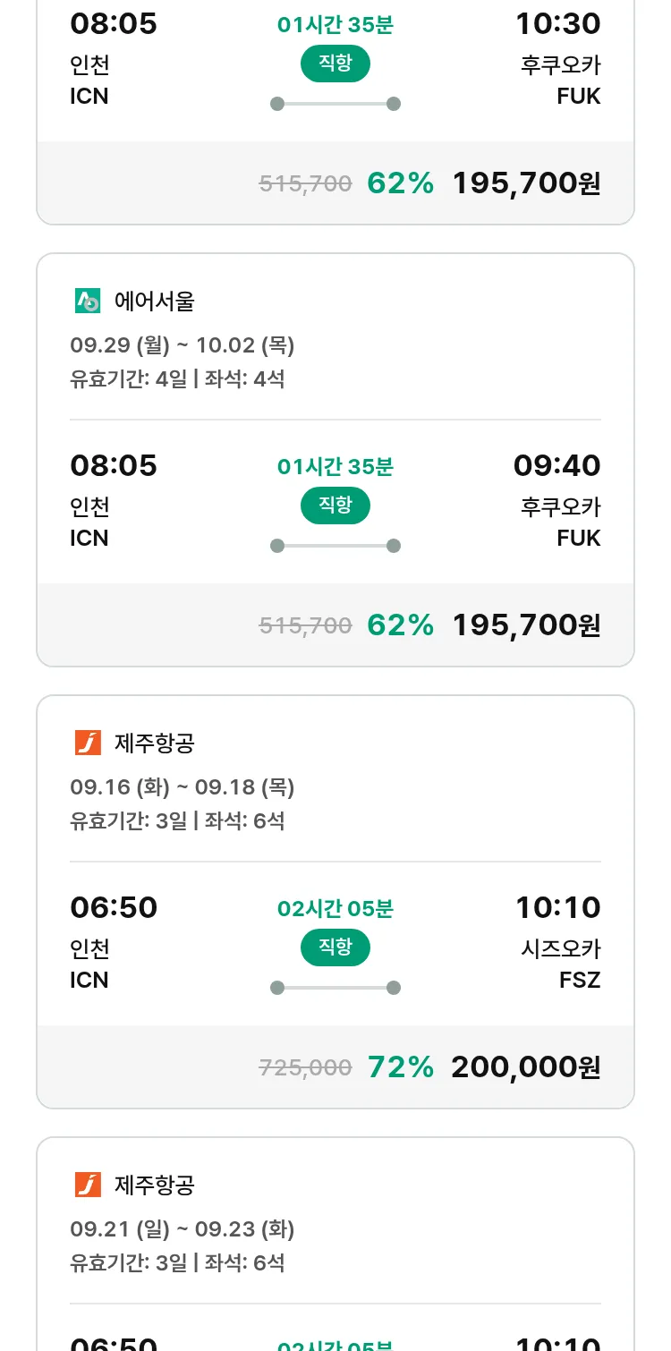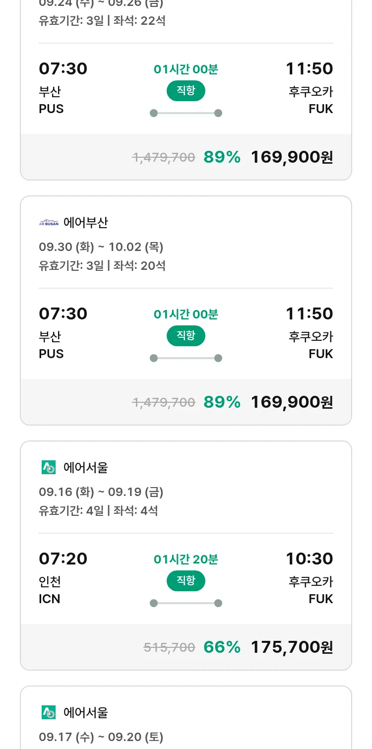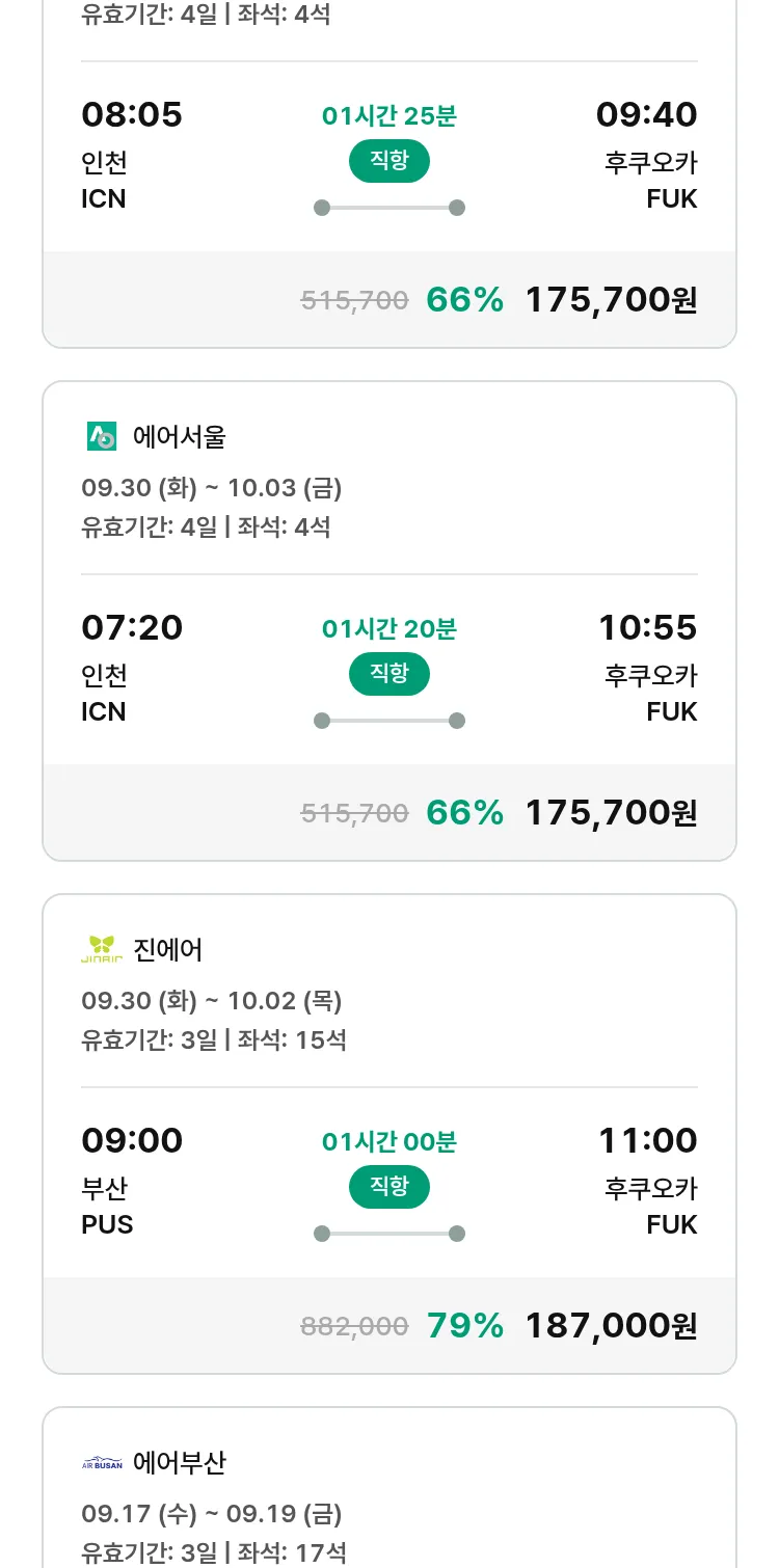 (8월 30일(토)) 땡처리 특가 항공권