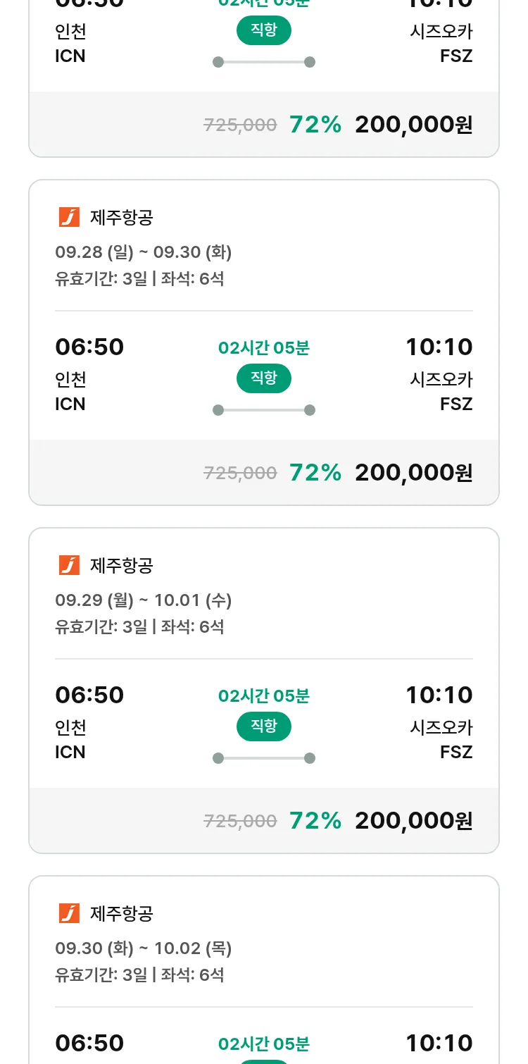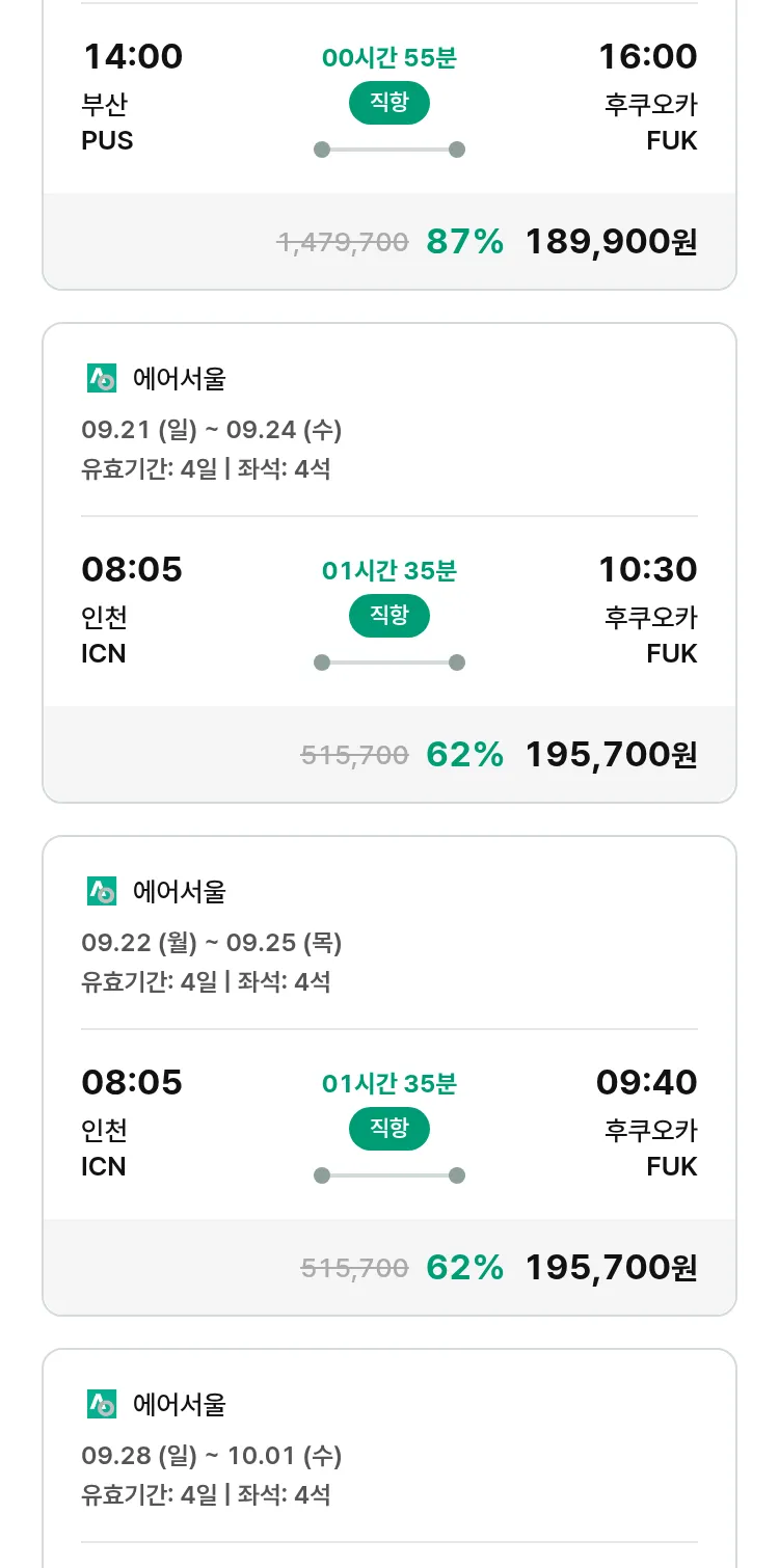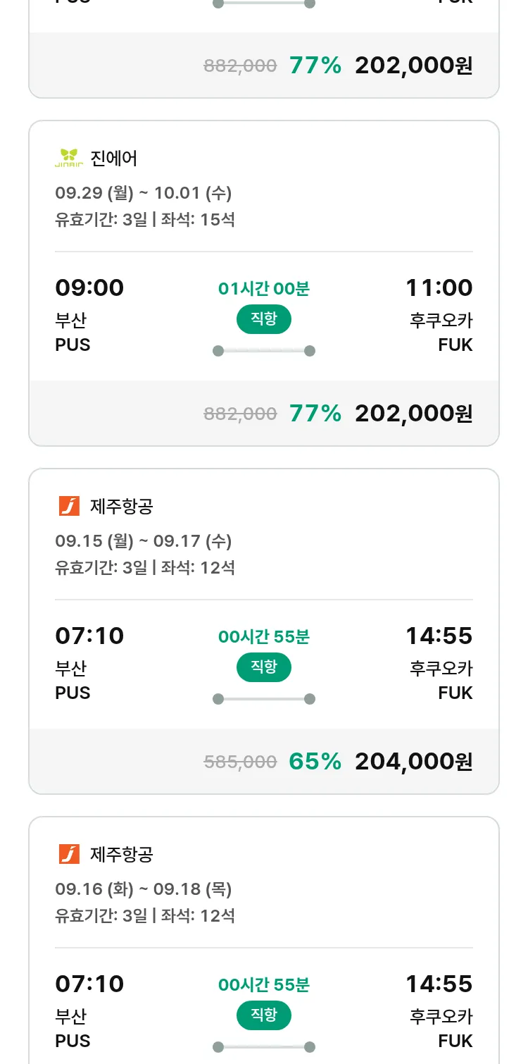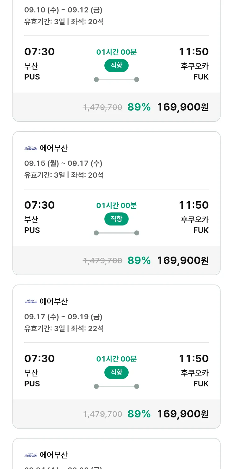 (8월 30일(토)) 땡처리 특가 항공권