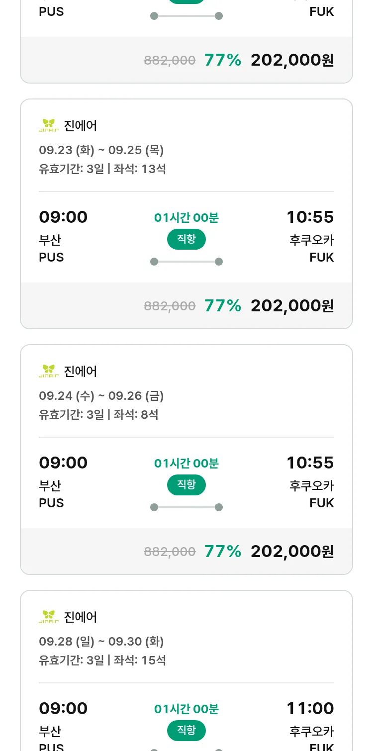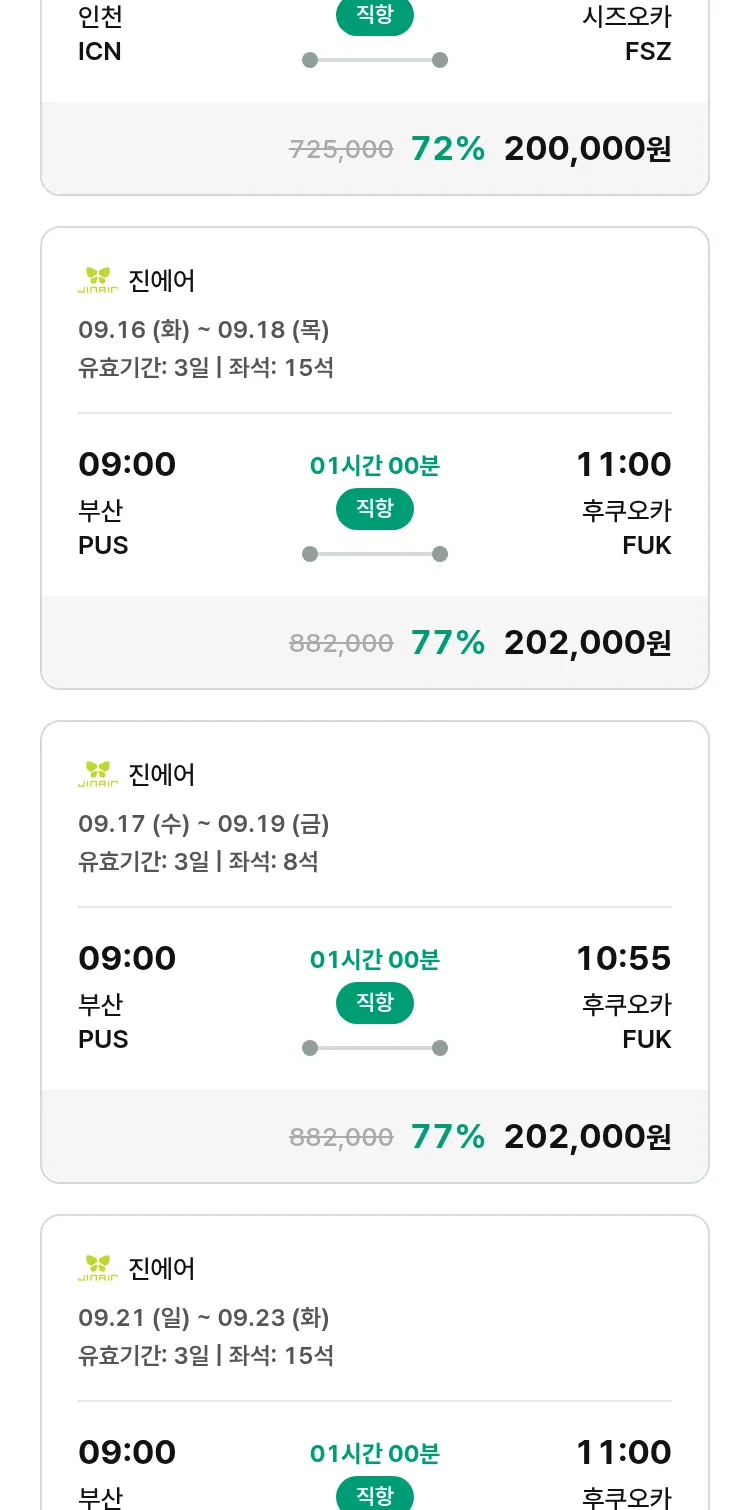 (8월 29일(금)) 땡처리 특가 항공권