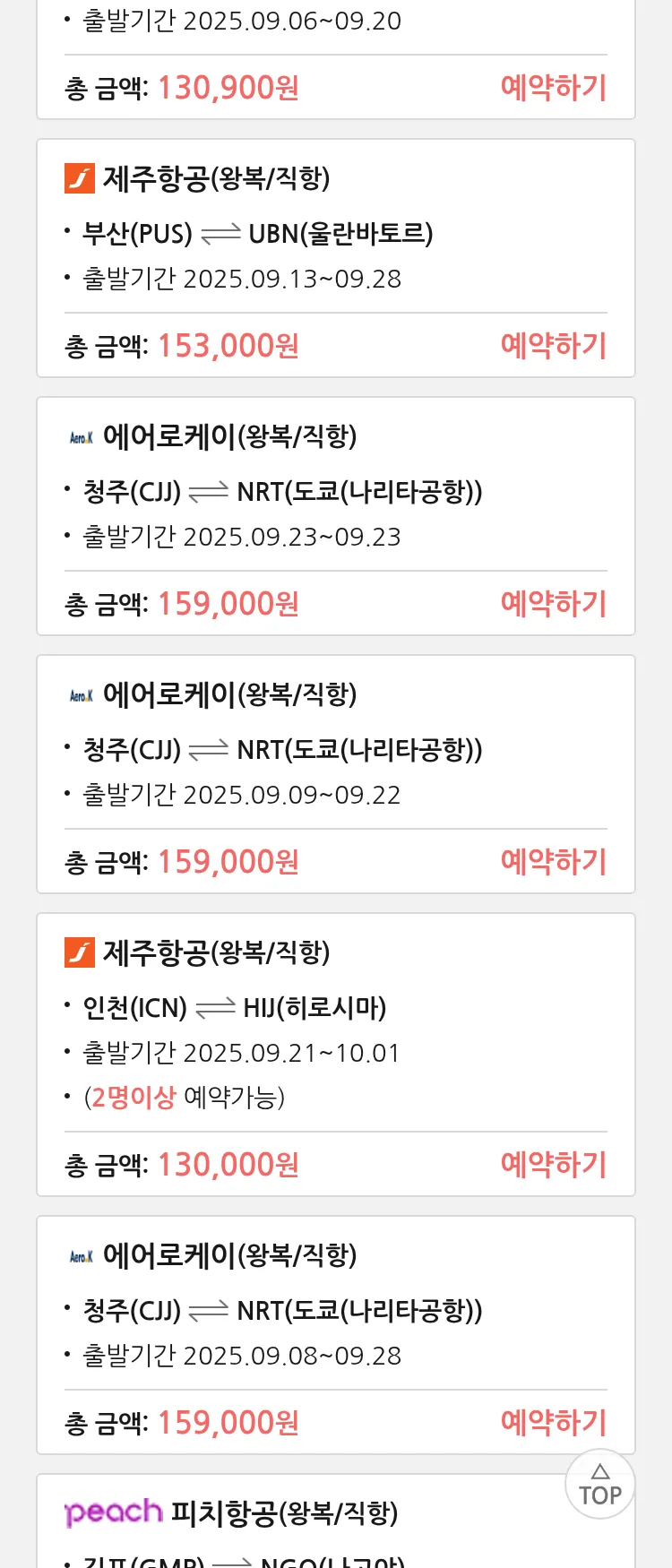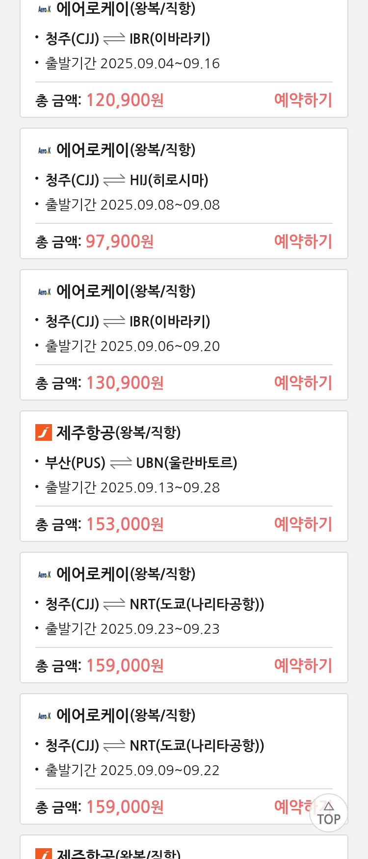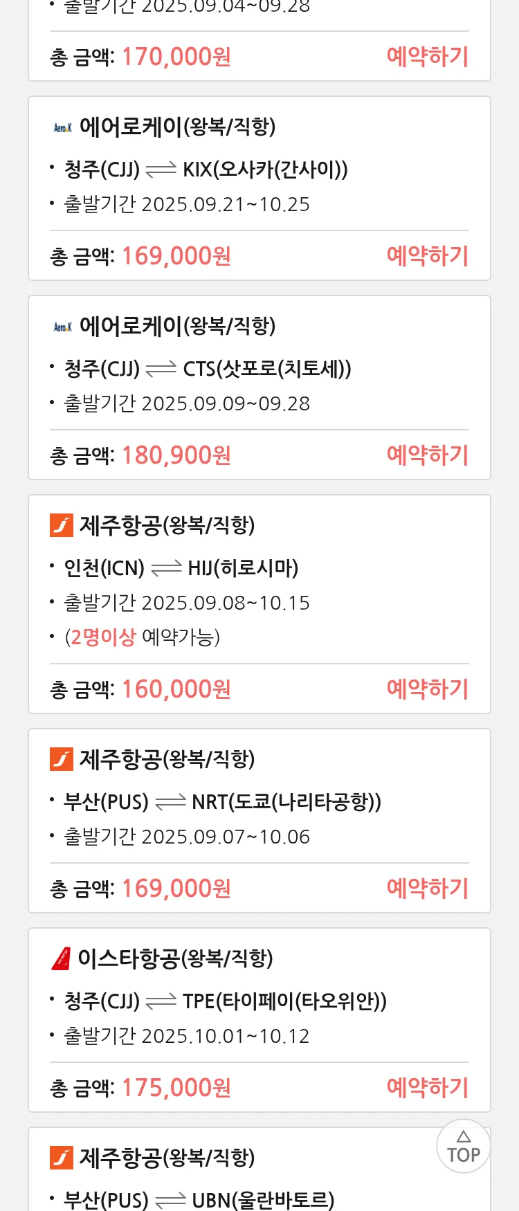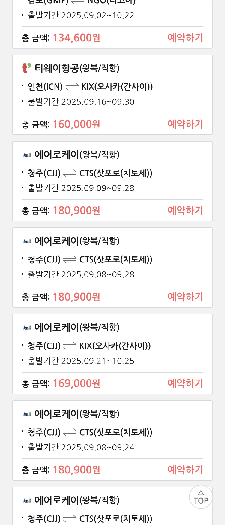 (9월1일(월)) 모두투어 일본 특가 항공권