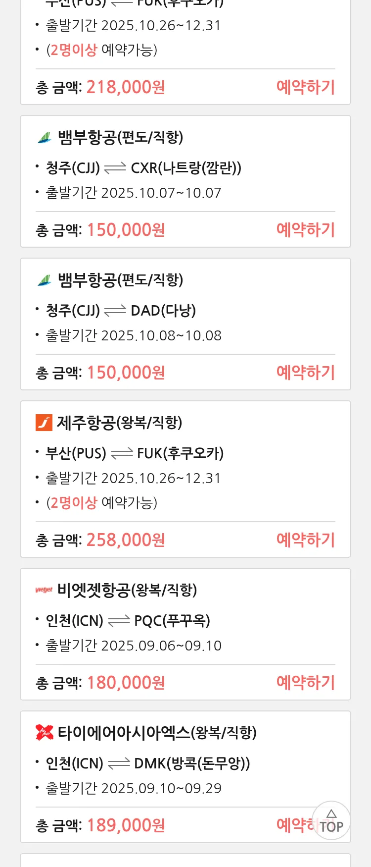 (8월 30일(토)) 모두투어 동남아 특가 항공권