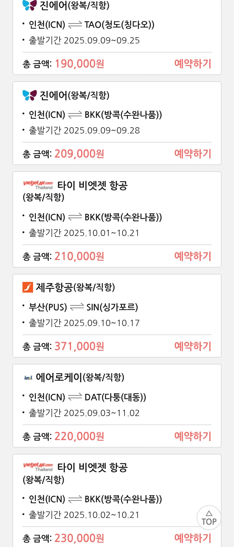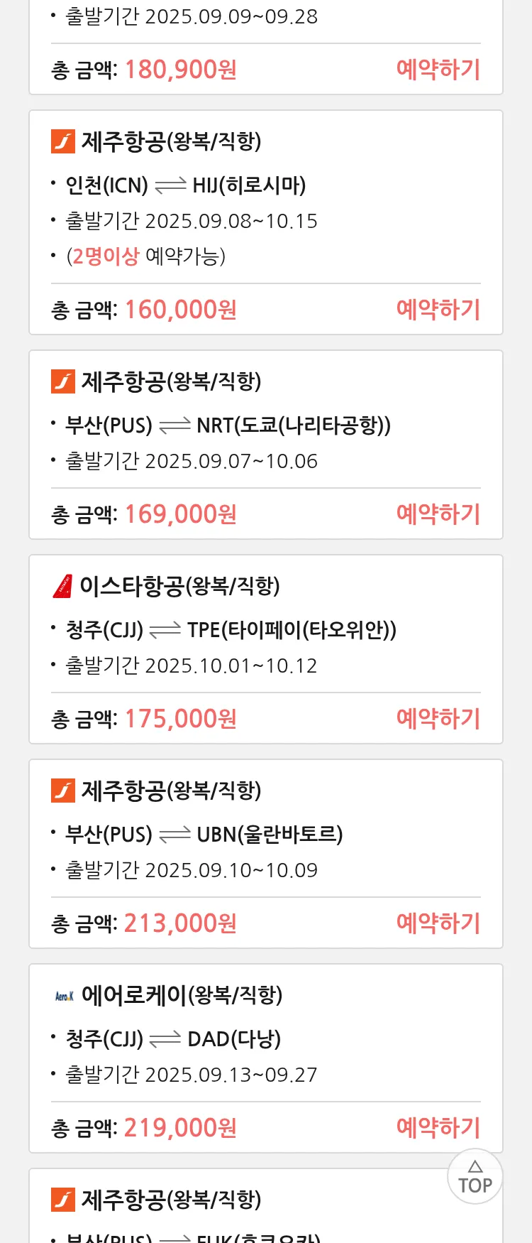 (9월1일(월)) 모두투어 동남아 특가 항공권