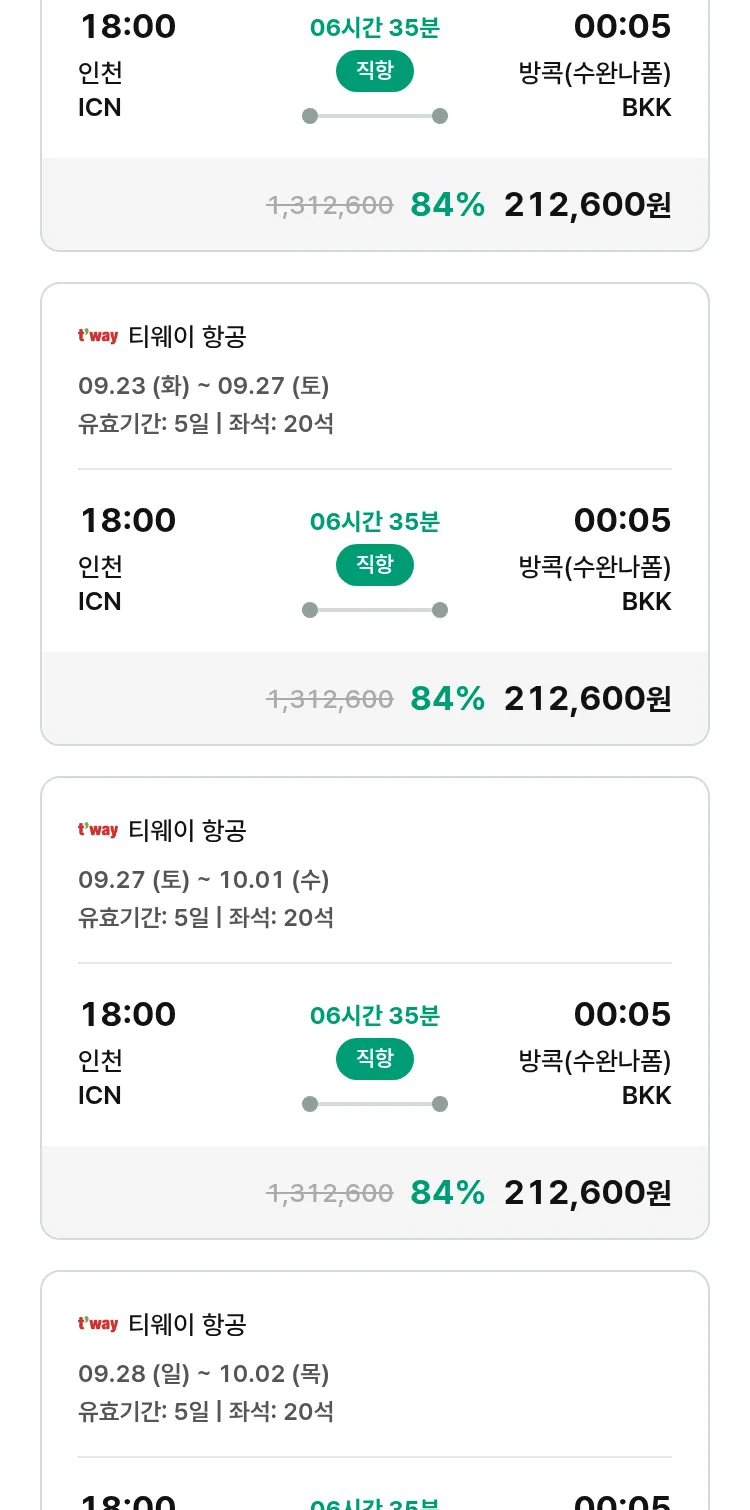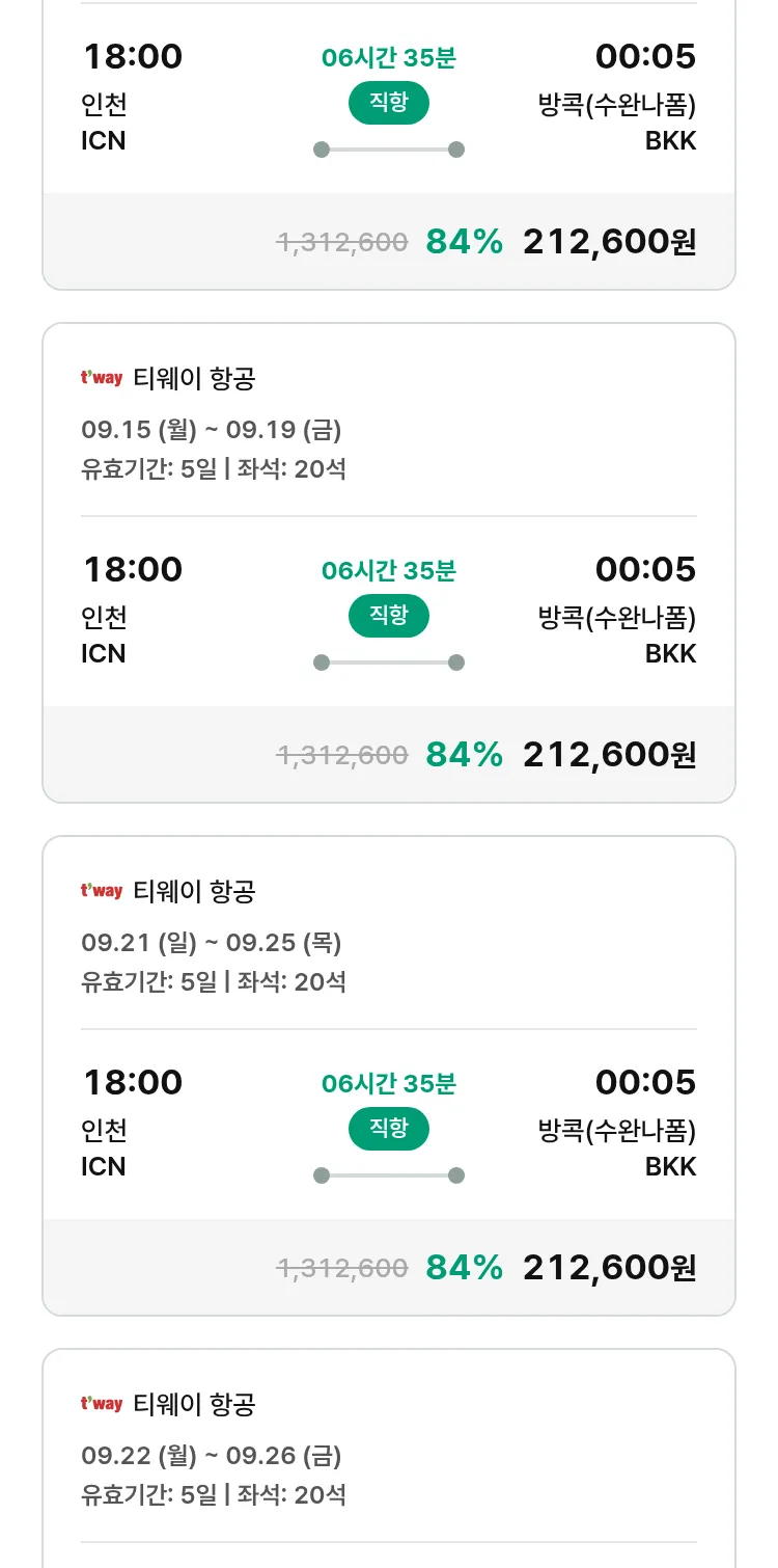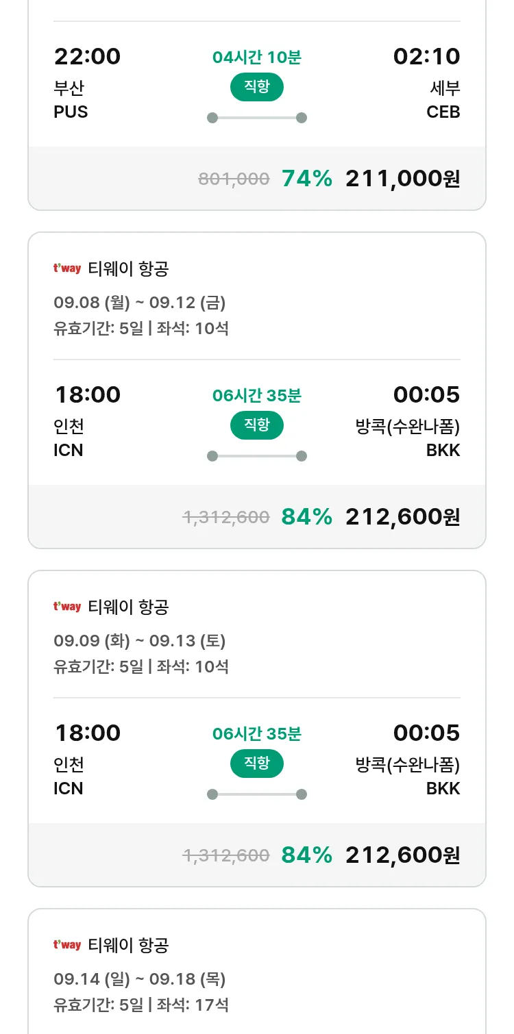 (8월 31일(일)) 땡처리 특가 항공권
