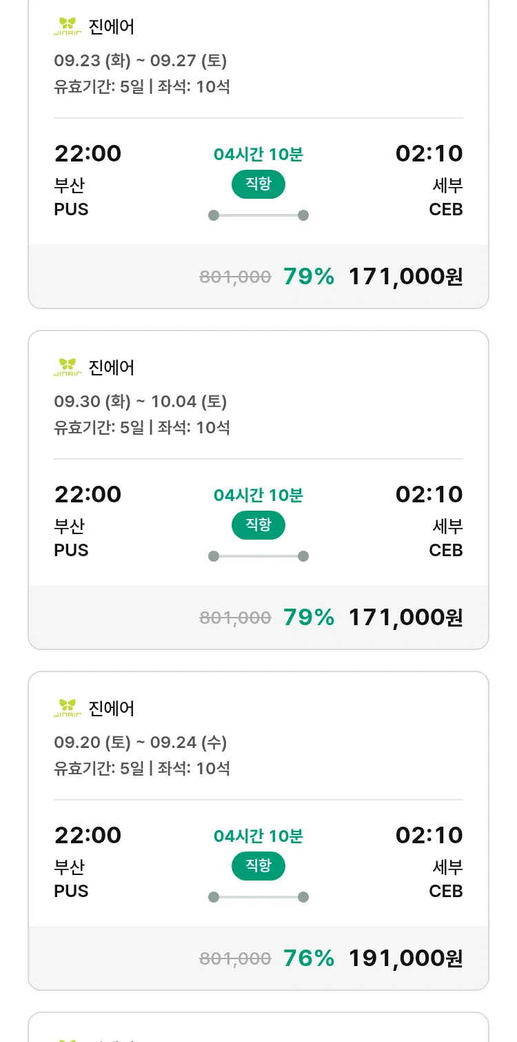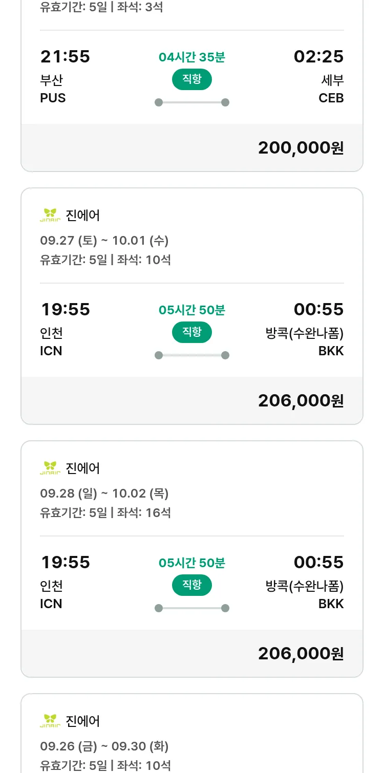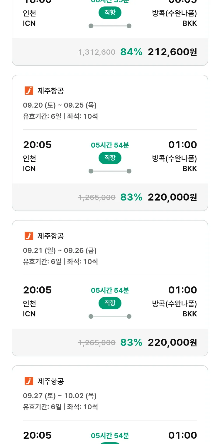 (8월 30일(토)) 땡처리 특가 항공권