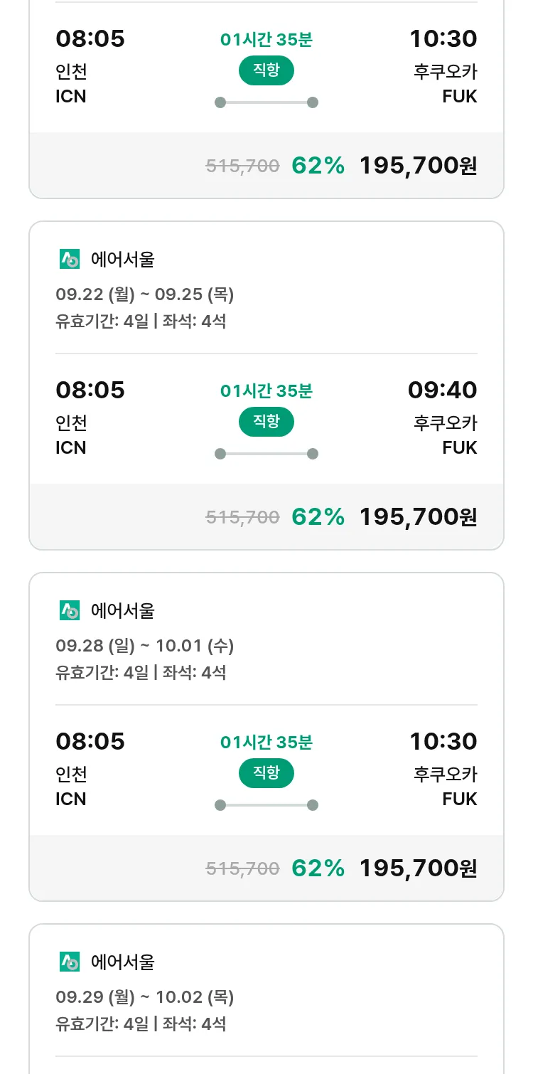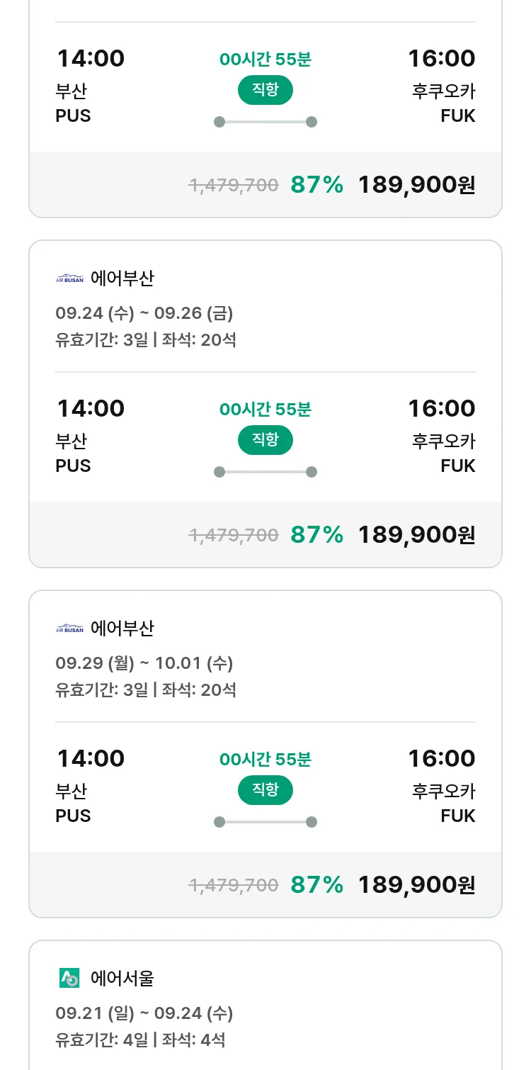 (8월 29일(금)) 땡처리 특가 항공권