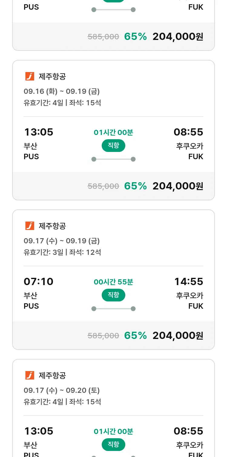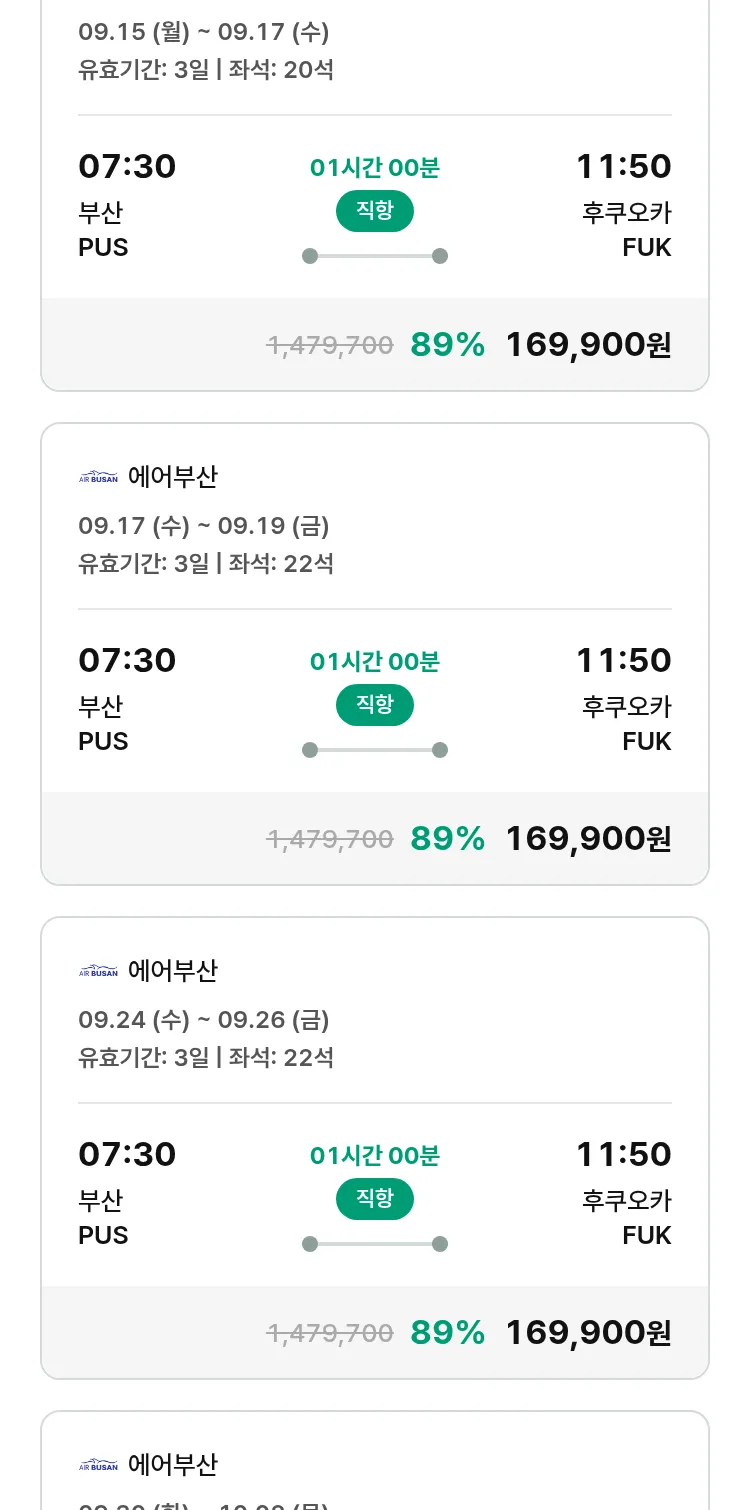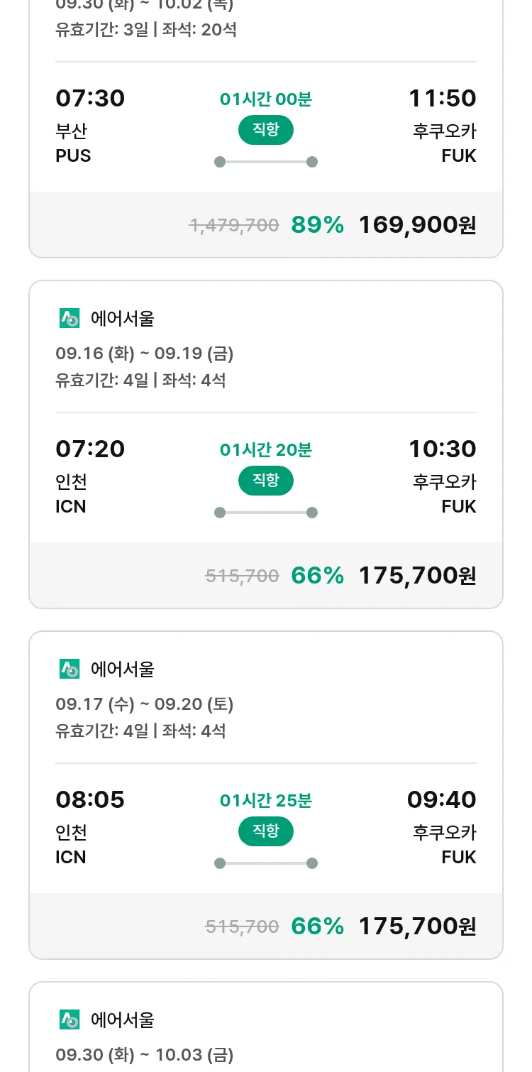 (8월 30일(토)) 땡처리 특가 항공권