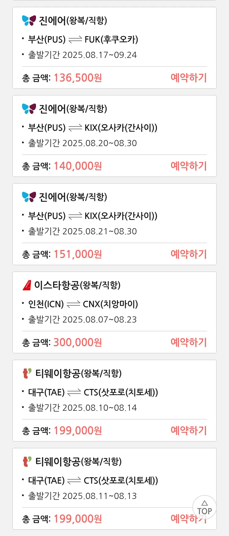 (7월 31일(목)) 모두투어 일본 특가 항공권