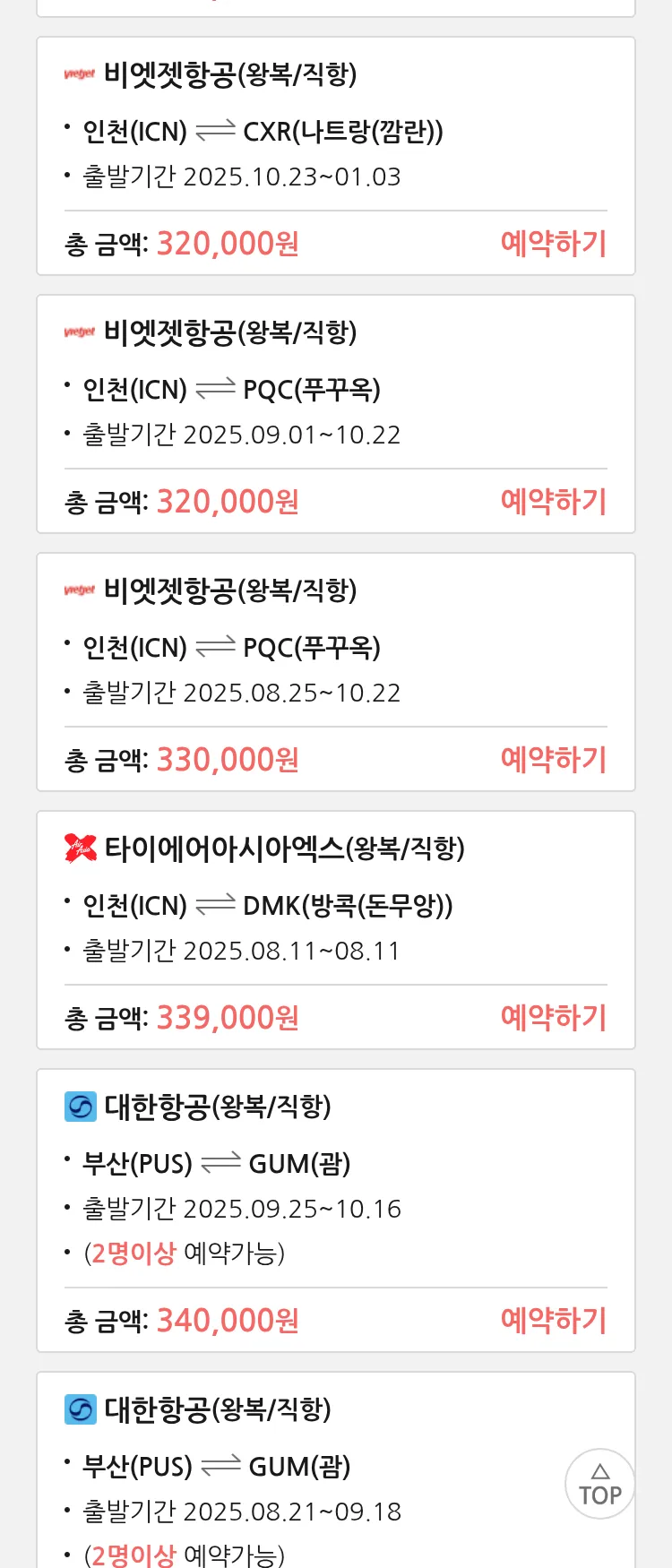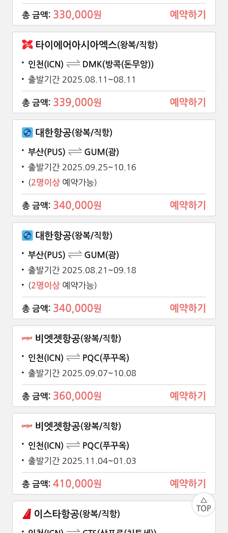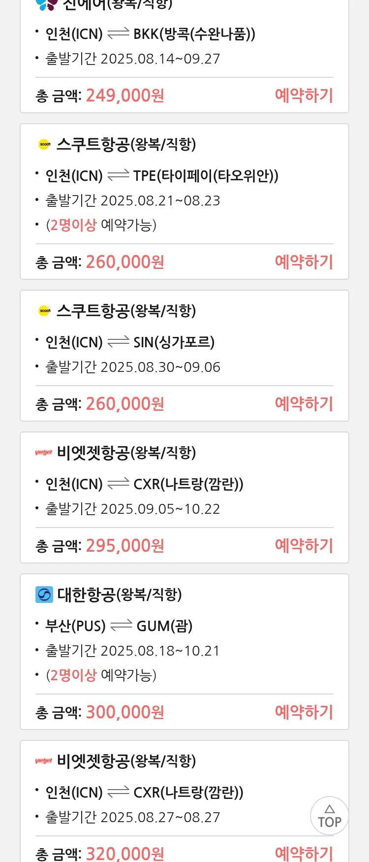 (8월4일(월)) 모두투어 동남아 특가 항공권