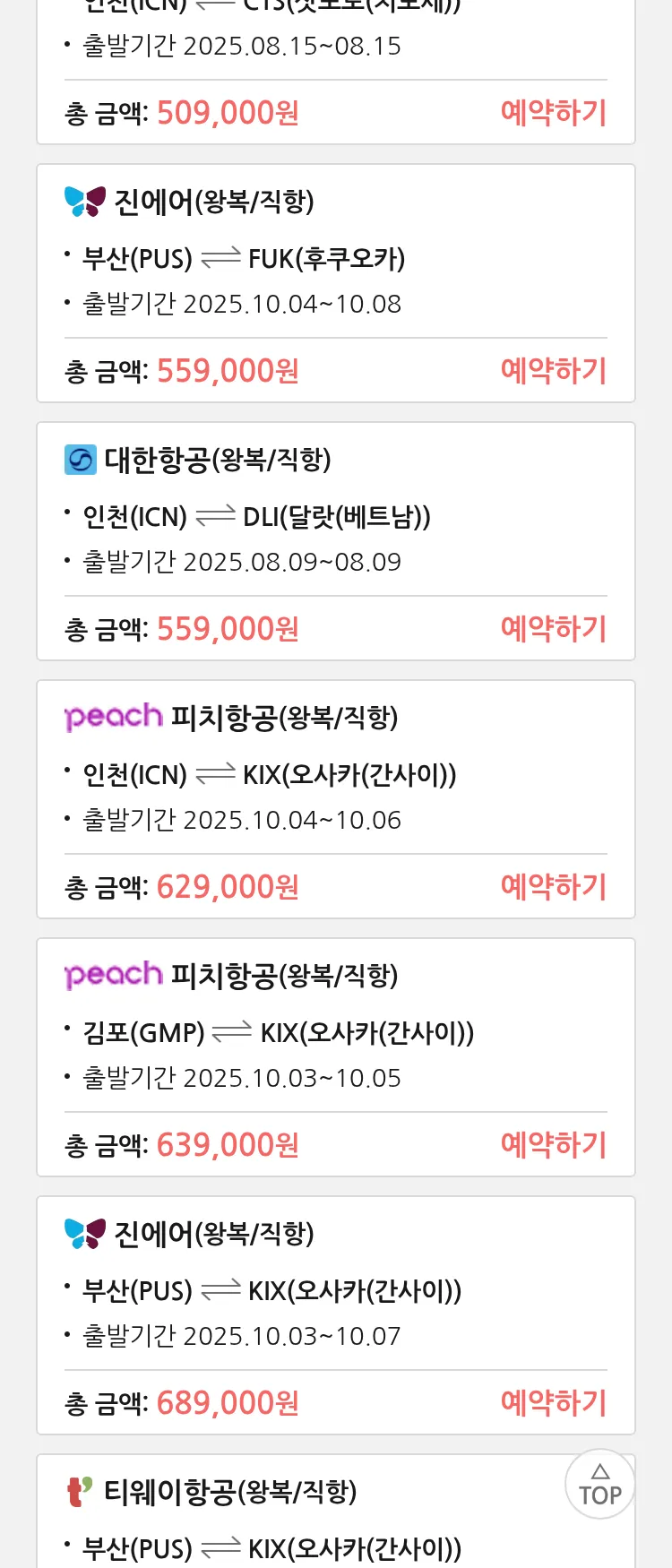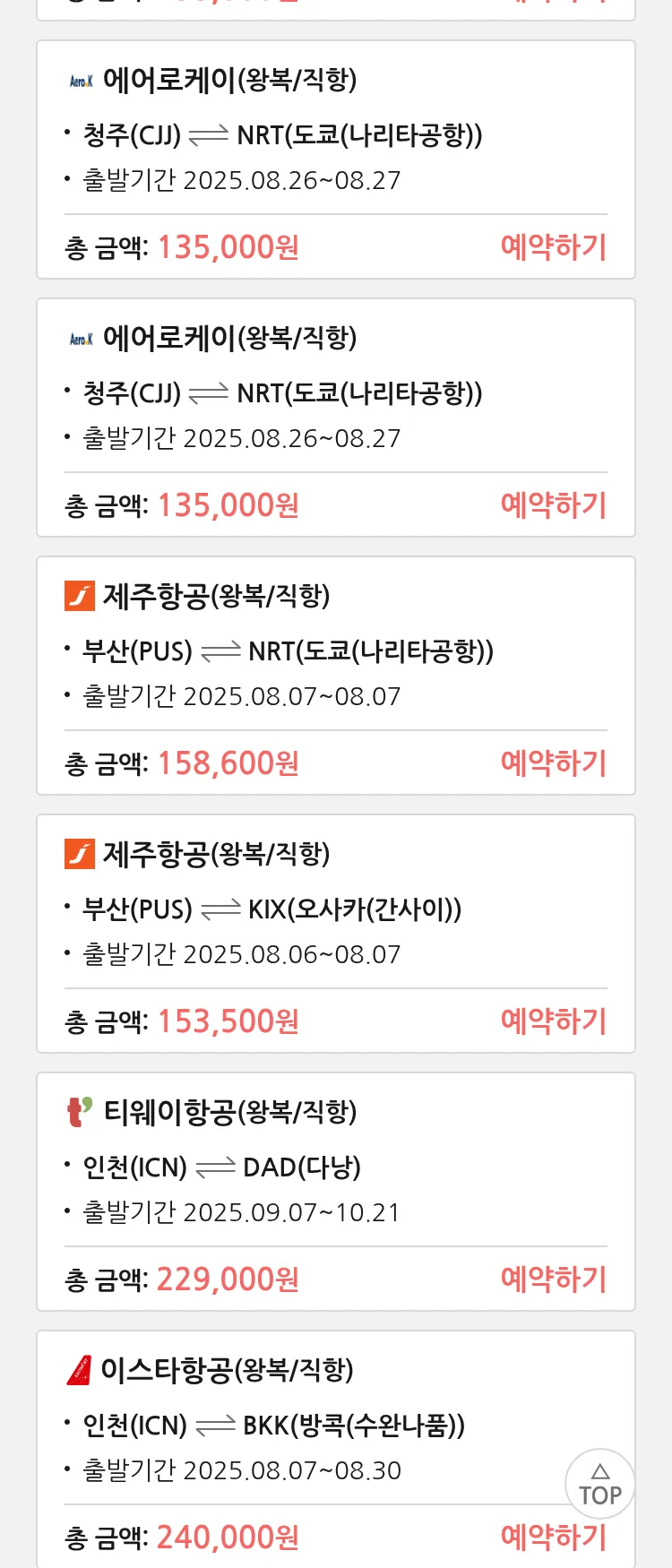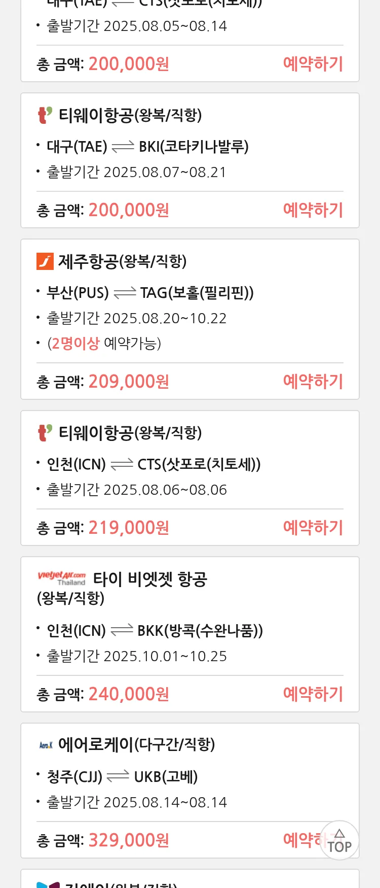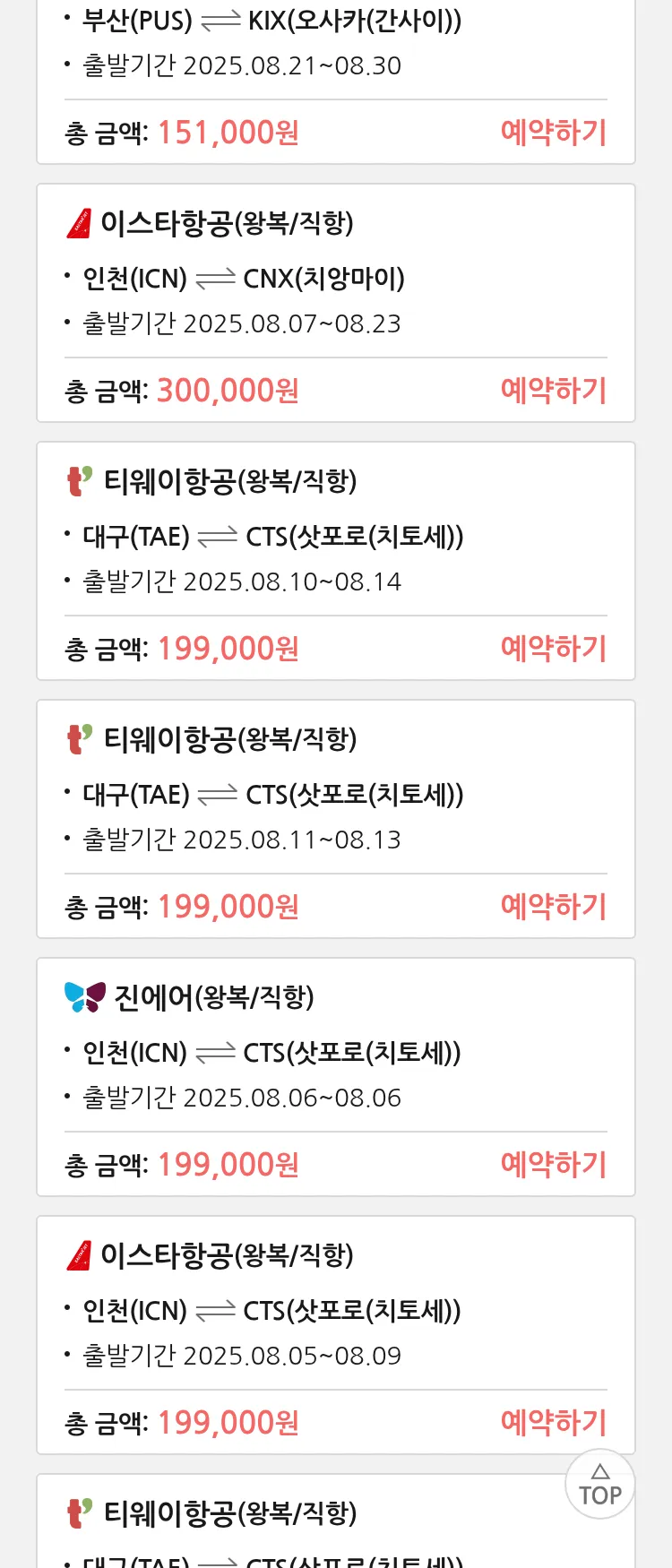 (8월4일(월)) 모두투어 동남아 특가 항공권
