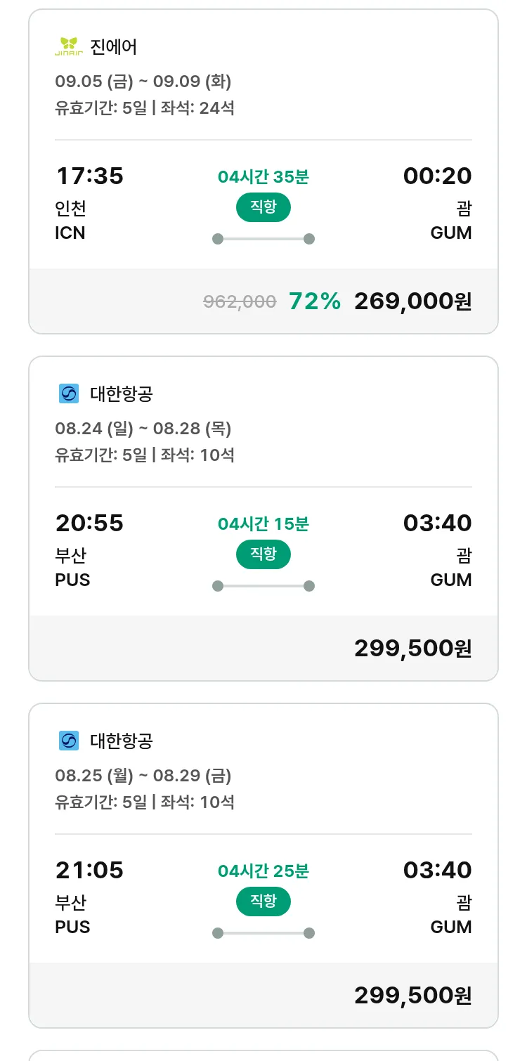 (8월4일(월)) 땡처리 특가 항공권