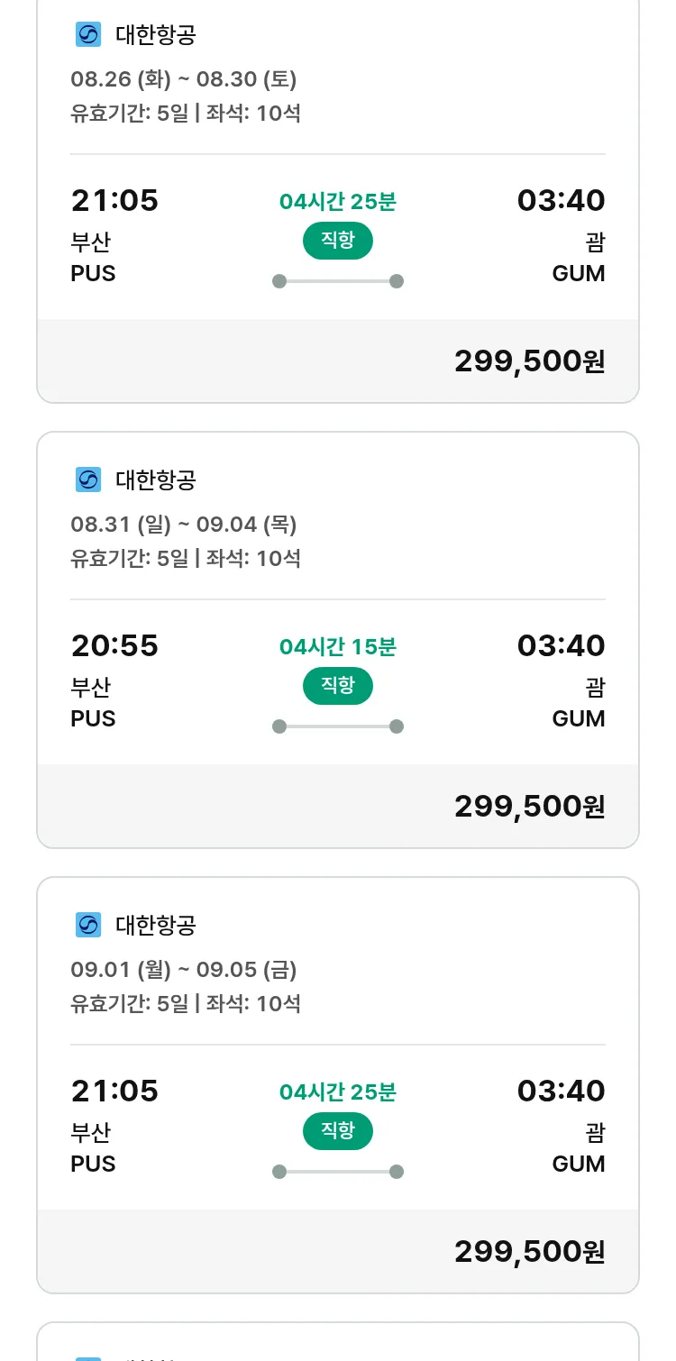 (8월5일(화)) 모두투어 남태평양 특가 항공권