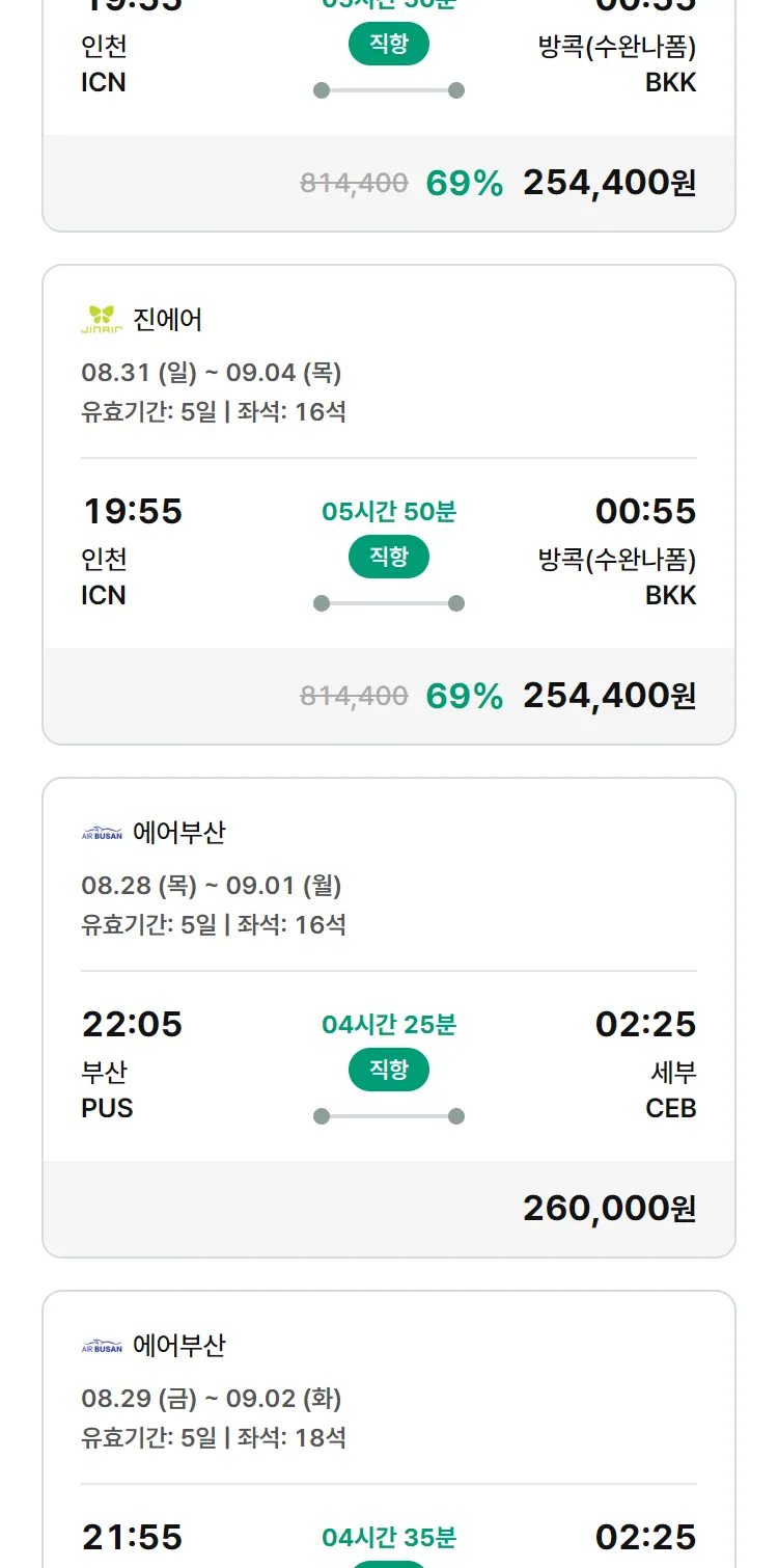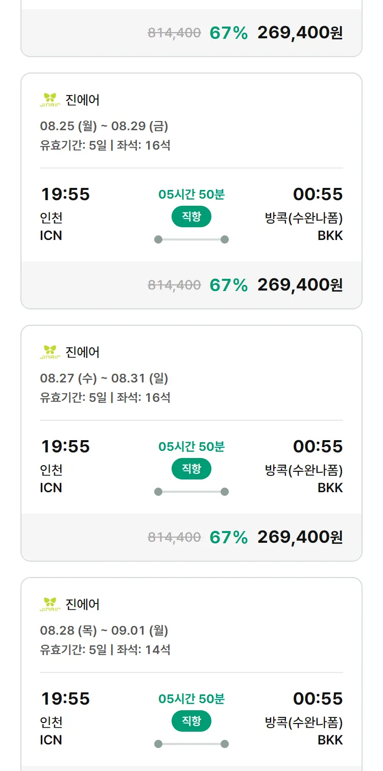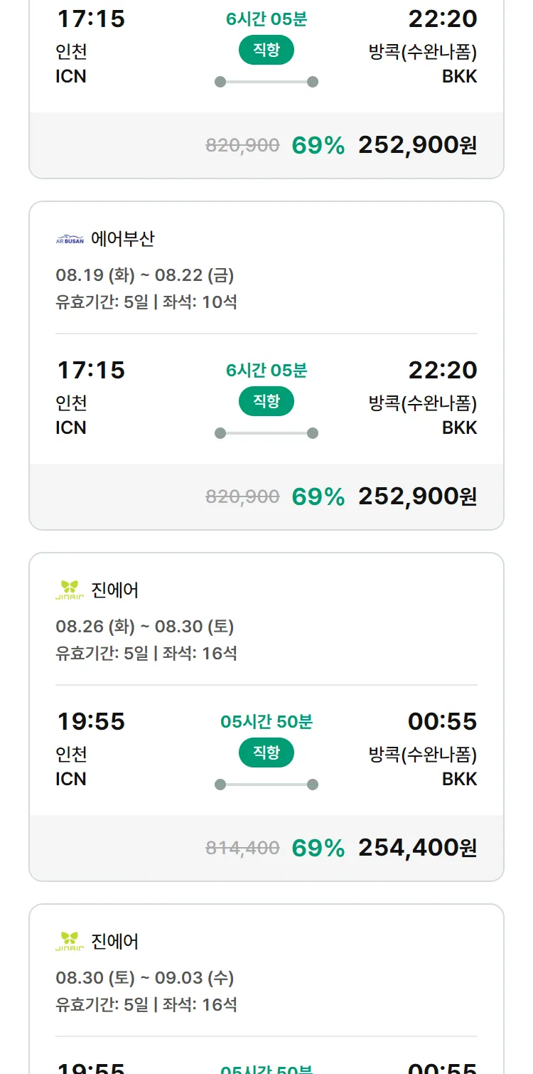(8월5일(화)) 모두투어 동남아 특가 항공권