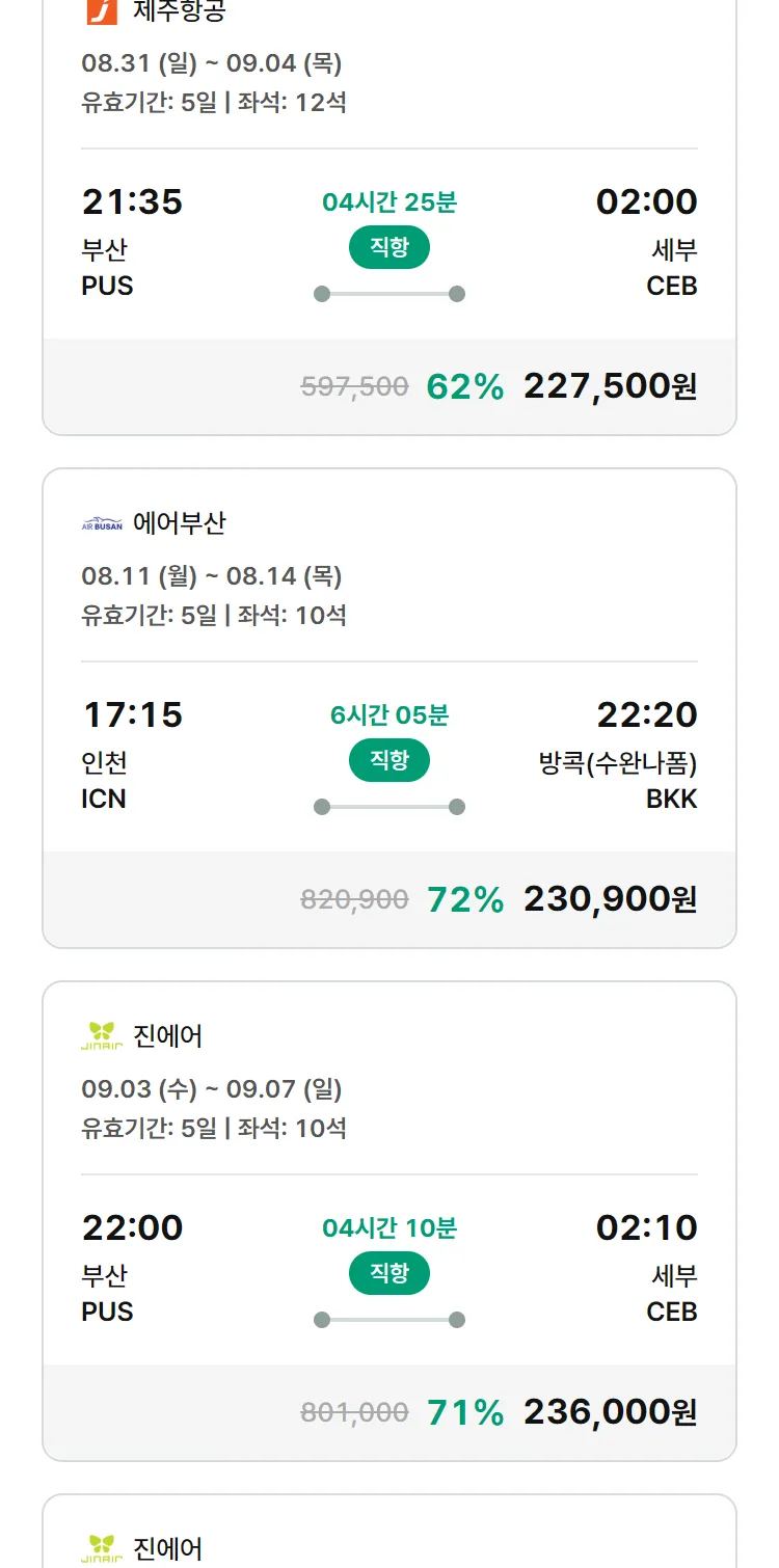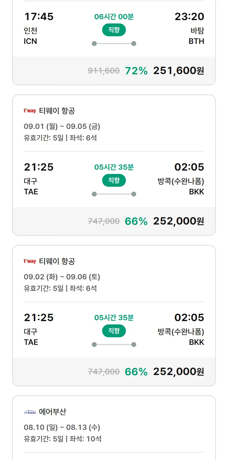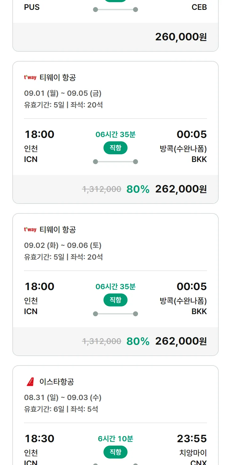 (8월5일(화)) 모두투어 동남아 특가 항공권