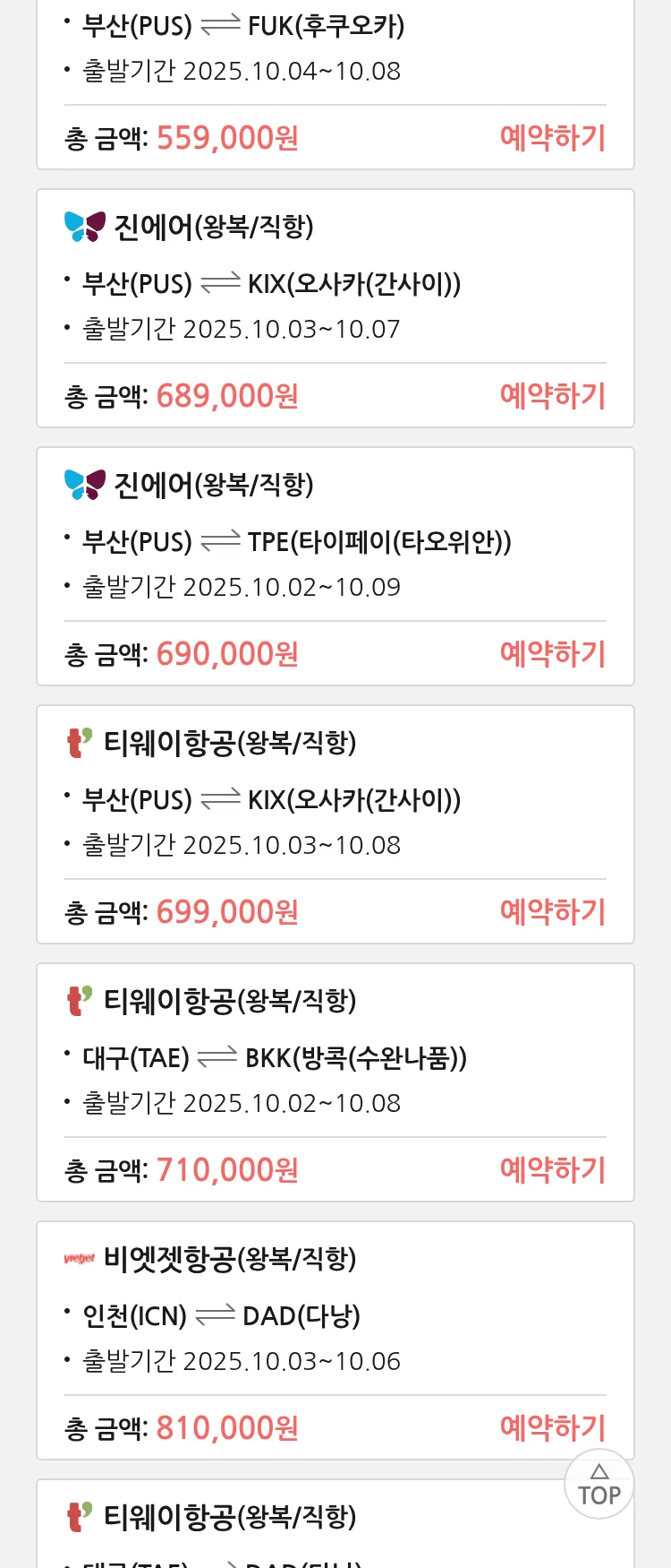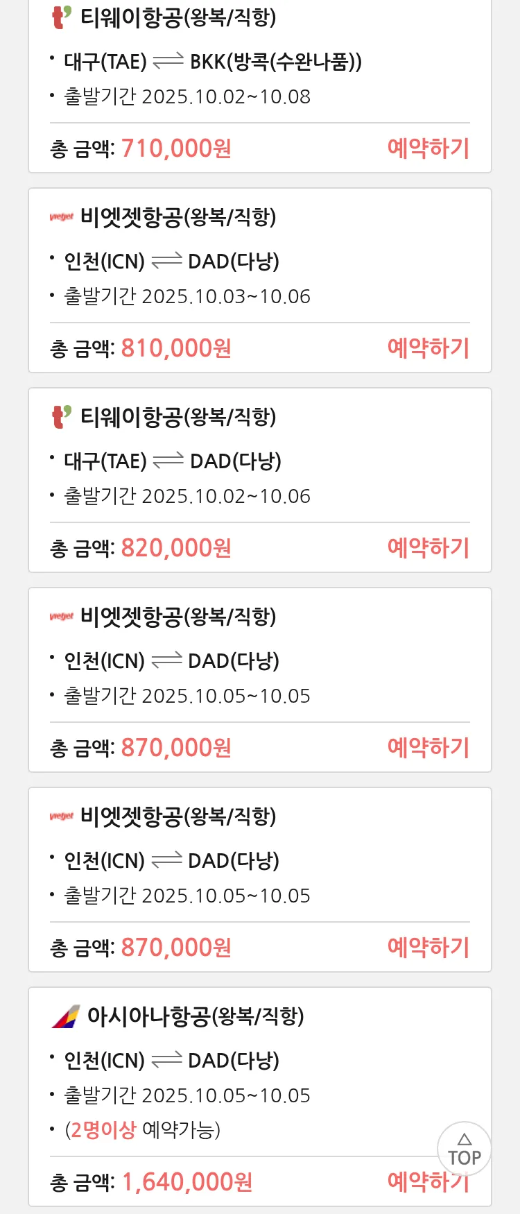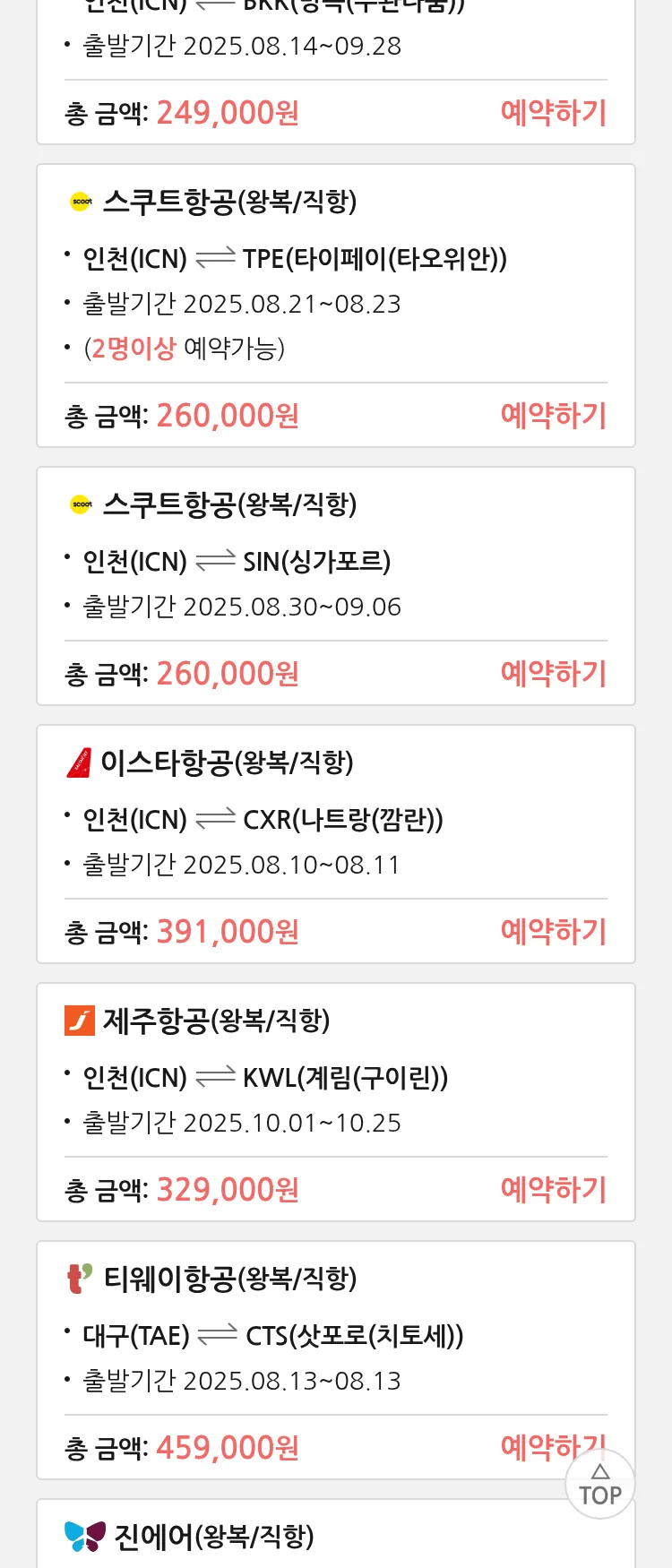 (8월6일(수)) 모두투어 동남아 특가 항공권