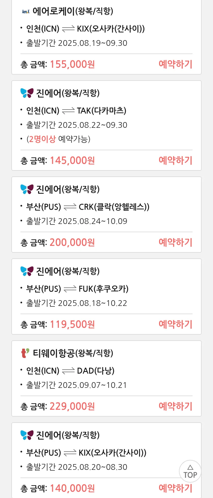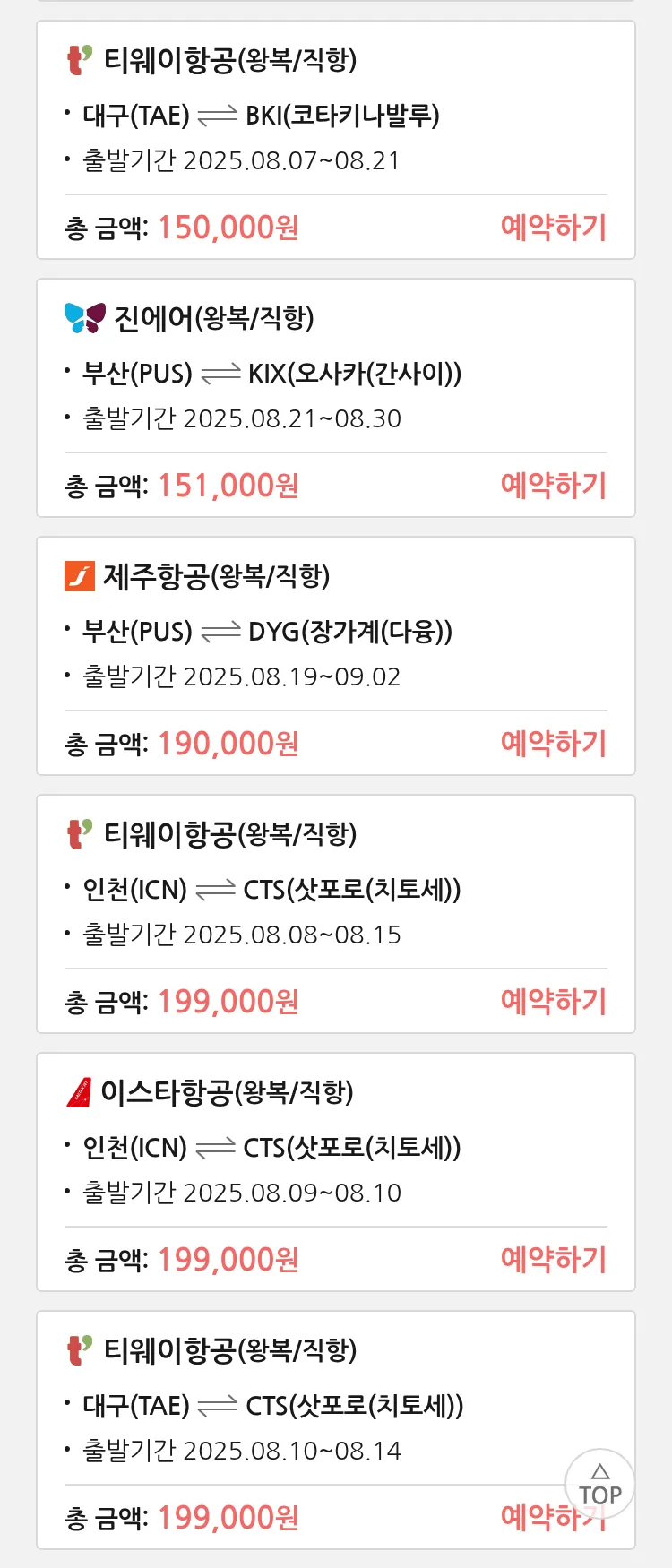 (8월5일(화)) 모두투어 일본 특가 항공권