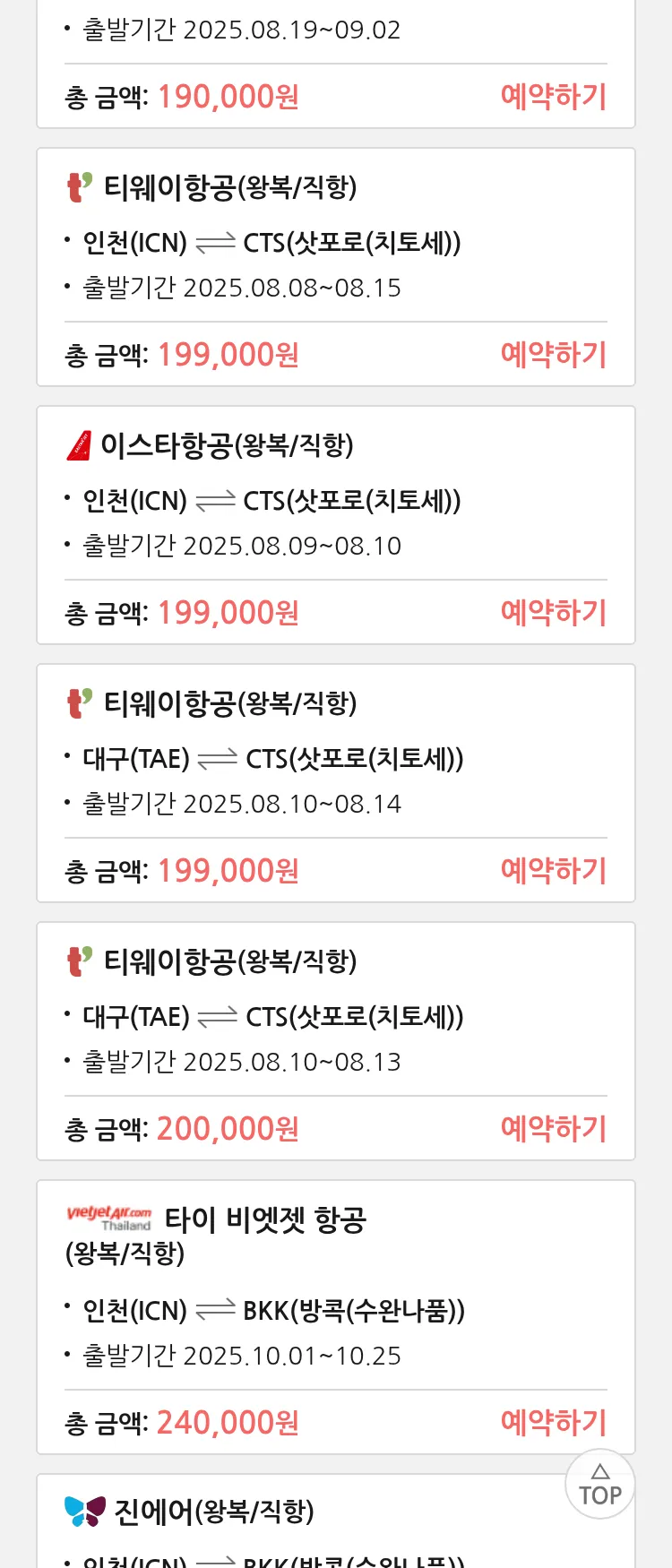 (8월5일(화)) 모두투어 동남아 특가 항공권