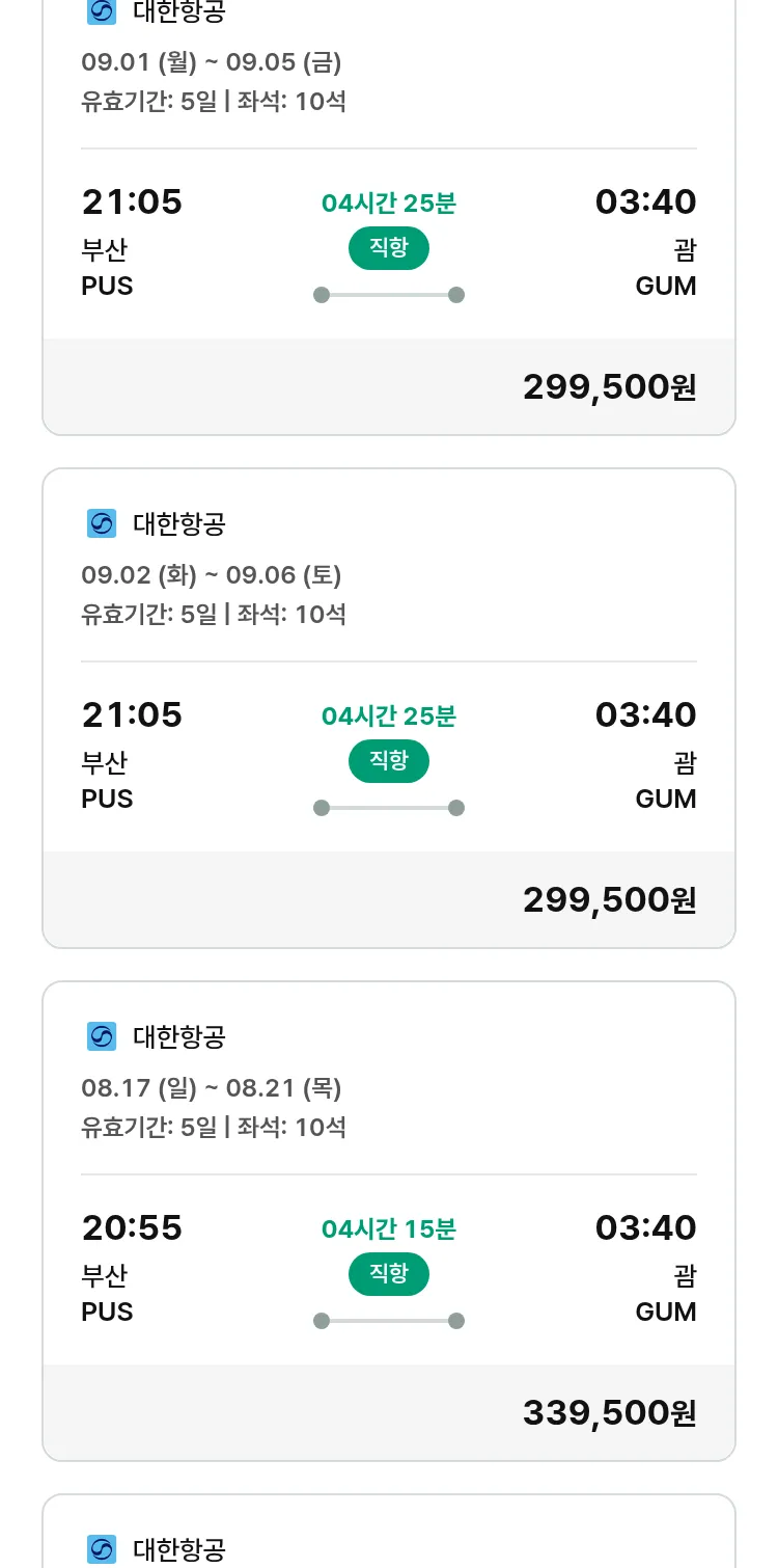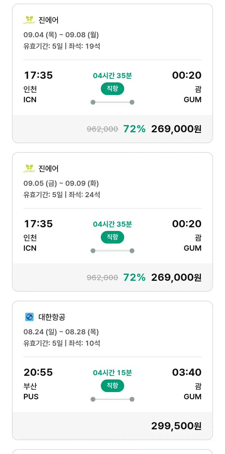 (8월7일(목)) 모두투어 남태평양 특가 항공권