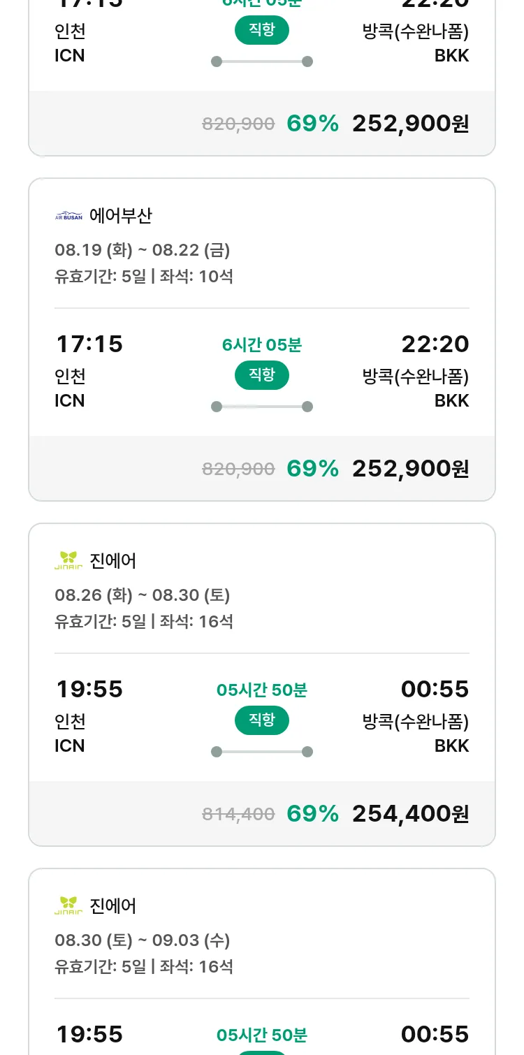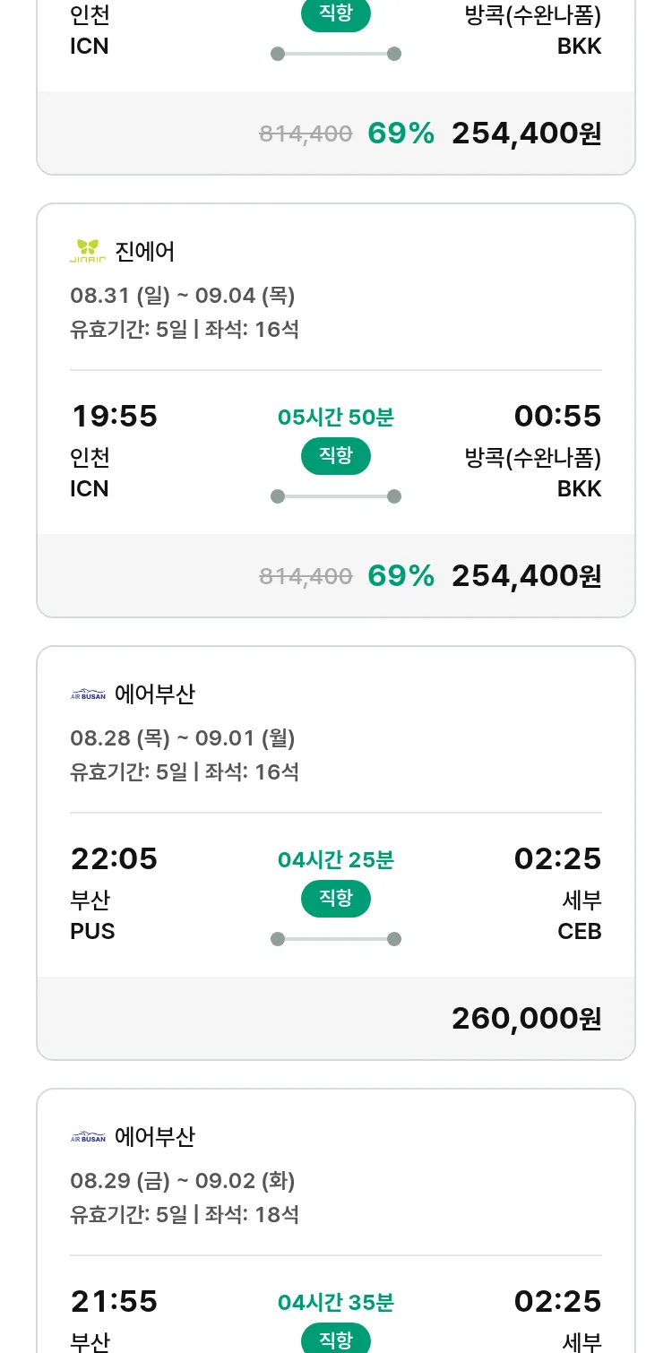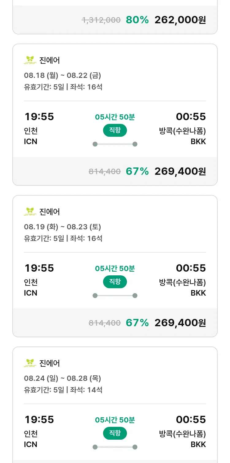 (8월6일(수)) 땡처리 특가 항공권